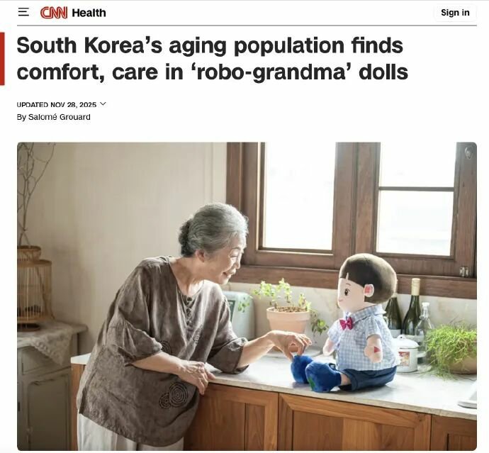 韩国向独居老人分发AI机器人:随着韩国步入“超级老龄化”社会,独居老人正面临严重的孤独、健康监护资源短缺、护理人员不足等问题。为应对这一挑战,截至2025年11月,韩国已向独居老人发放了超过12000台智能公仔机器人。这款名为“孝道”(Hyodol)的机器人内置 AI 对话系统,可以与老人对话、提醒按时用餐服药,同时配备红外感应器,可24小时监测动作,长时间未活动时会自动报警通知护理团队或家属。韩国多个城市已将这项技术纳入公共养老与社区照护计划。不过此举也引发了关于情感依赖和“陪伴替代”等伦理争议。Hyodol首席执行官金智熙印象最深刻的一个案例是一位老妇人用玩偶纪念她已故的女儿,随后几乎全部时间都与机器人相伴,退出社交生活。也有专家和一些老年人认为,使用拟人化玩偶监控行为可能损害尊严和自主性。相比之下,日本推出的治疗型机器人海豹 PARO 并不拟人化,以柔软舒适的毛绒外观和简单易用设计获得成功,已被证明可帮助痴呆症老人、创伤后应激障碍退伍军人及发育障碍儿童,定期使用可缓解焦虑、抑郁和躁动等症状。目前,PARO 已在全球30多个国家投入使用,而 Hyodol 也在推进类似的全球扩张计划,预计于2026年正式上市。无论是健谈的韩国“孙辈”机器人还是治疗型海豹,这类人工智能驱动的伴侣正逐渐走进日常生活,预计到 2030 年,全球养老机器人市场将达到 77 亿美元。等咱们老了就都能用上了吧!