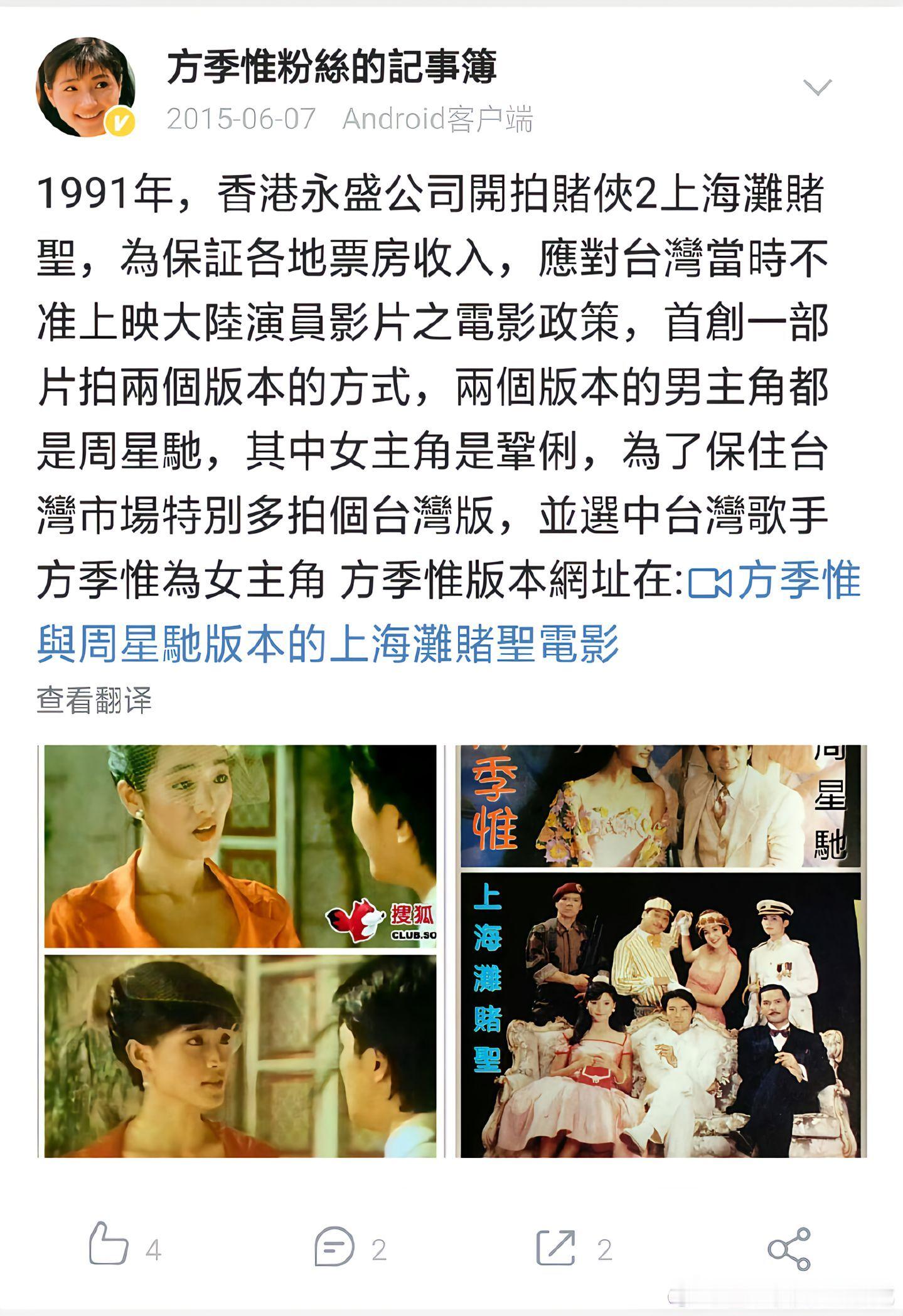 台湾封锁小红书一年当年,周星驰的《上海滩赌圣》,因为台湾当局封杀中国大陆籍艺人,不得不拍摄台湾特供版,里面的巩俐变成台湾女星方季惟。本来香港演艺圈在一定程度上歧视大陆人,台湾当时这一举动更是要封死大陆艺人的路,等于告诉香港制片方,如果香港电影要选大陆演员,大概率要多花钱重拍。