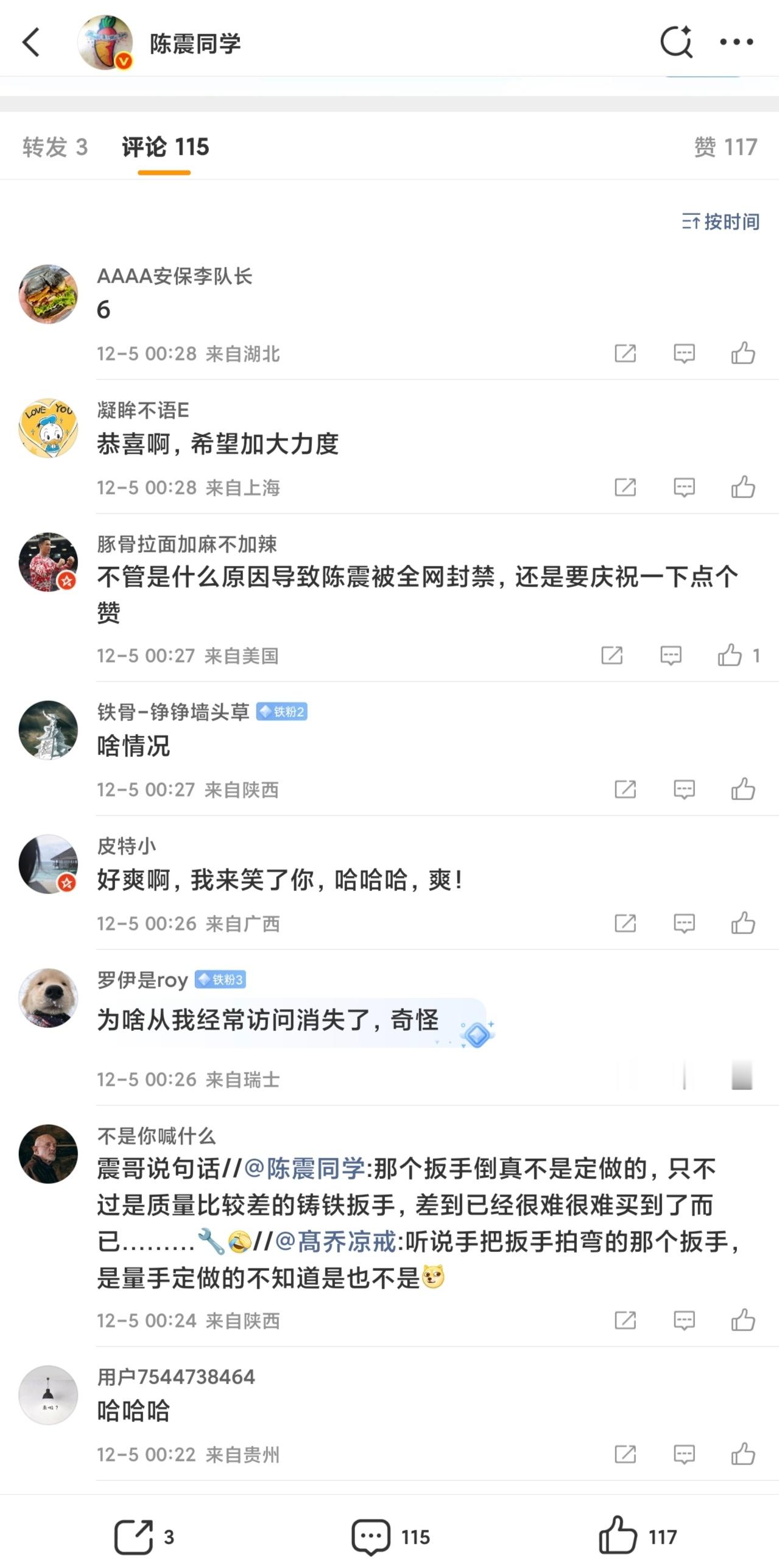 陈震被禁言了,我早就说过,他迟早会出问题,细数过往种种,他的言论和他的咖位很不配