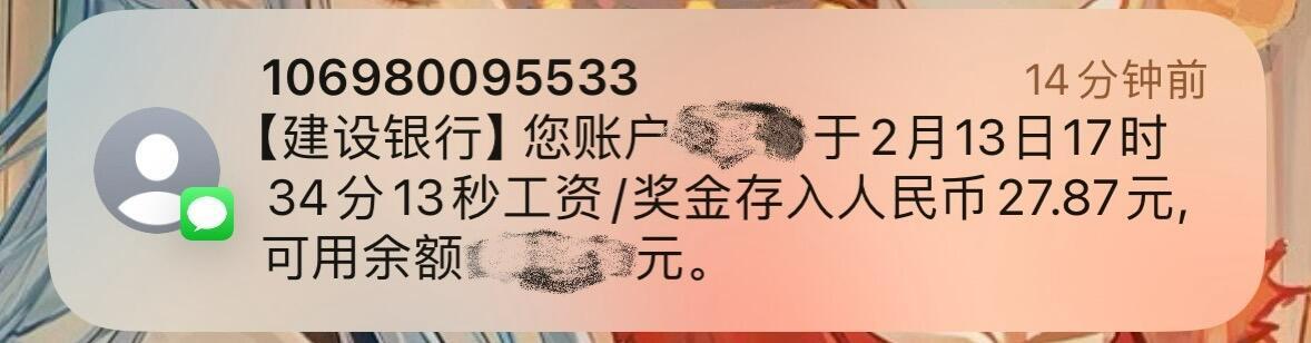 工资到账以为是退款 这么离谱的吗?干什么工作工资只有二十多块钱呀,那还干个毛呀。无语了。你们拿到的最低工资是多少?来晒一晒吧。