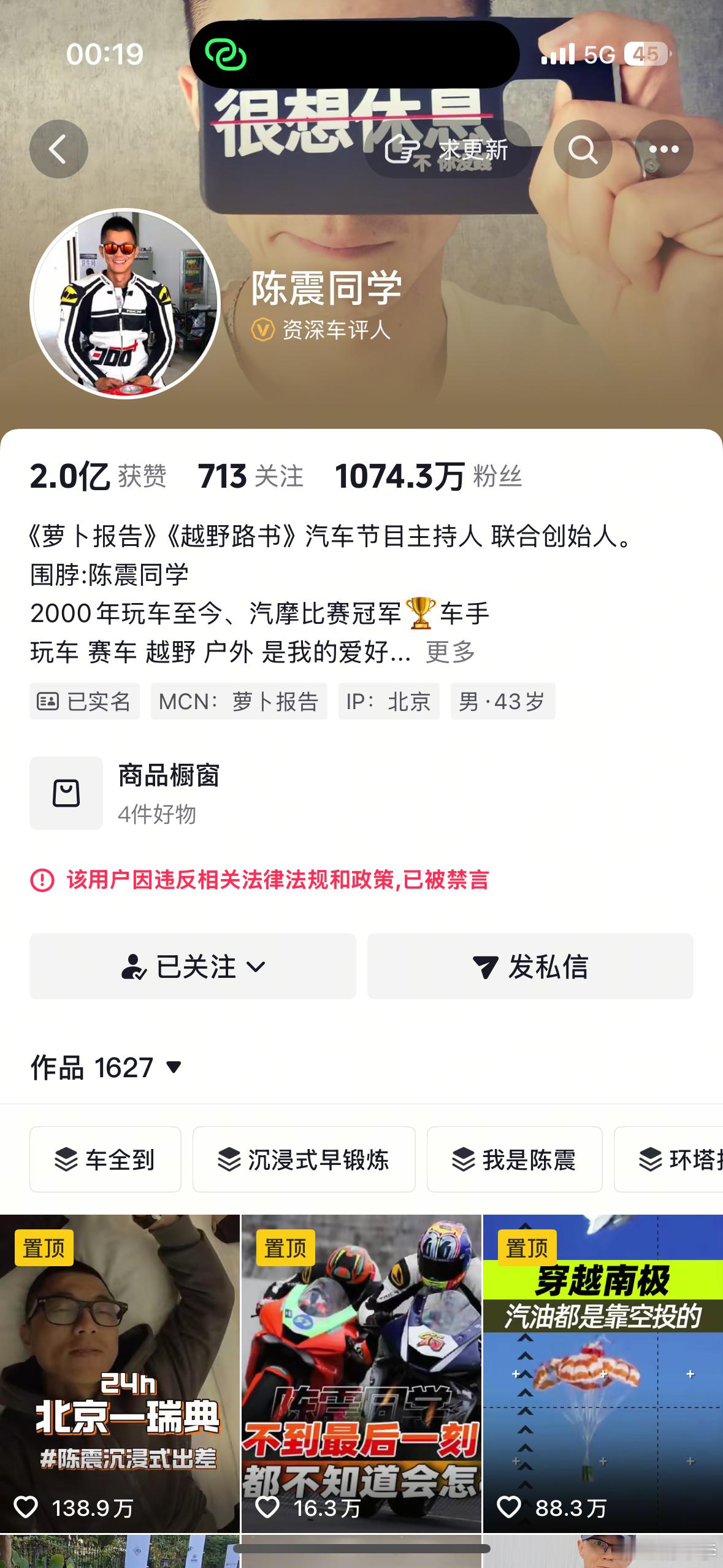 啊卧槽????? 我是实打实关注微博关注韩哥跟震哥 4261 天,陈震就是汽车媒体的风向标之一,事儿大了谨言慎行,给大家认真拍节目,把车介绍好,就是最长期主义的路子了 北京