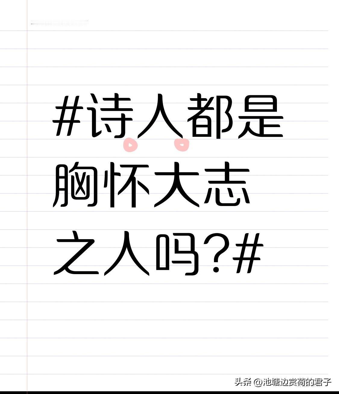 诗人都是胸怀大志之人吗? 诗人不一定都是胸怀大志之人。就说“拒绝内耗第一人”苏东坡,45岁被贬去沙湖,人到中年诸事不顺,可他在途中遇雨,依旧悠然自得,吟啸前行,雨过天晴便感慨“也无风雨也无晴”。他没因挫折怨天尤人,而是以超越的眼光发现生活小确幸,更像是个乐天派,没执着于所谓的“大志”。 还有唐朝山水田园诗人,当时很多文人遭受流放,像王维这类田园诗派代表,远离官场纷争,醉心于田园山水,他们追求的是内心宁静,而非宏图大志。可见,诗人的追求各有不同。