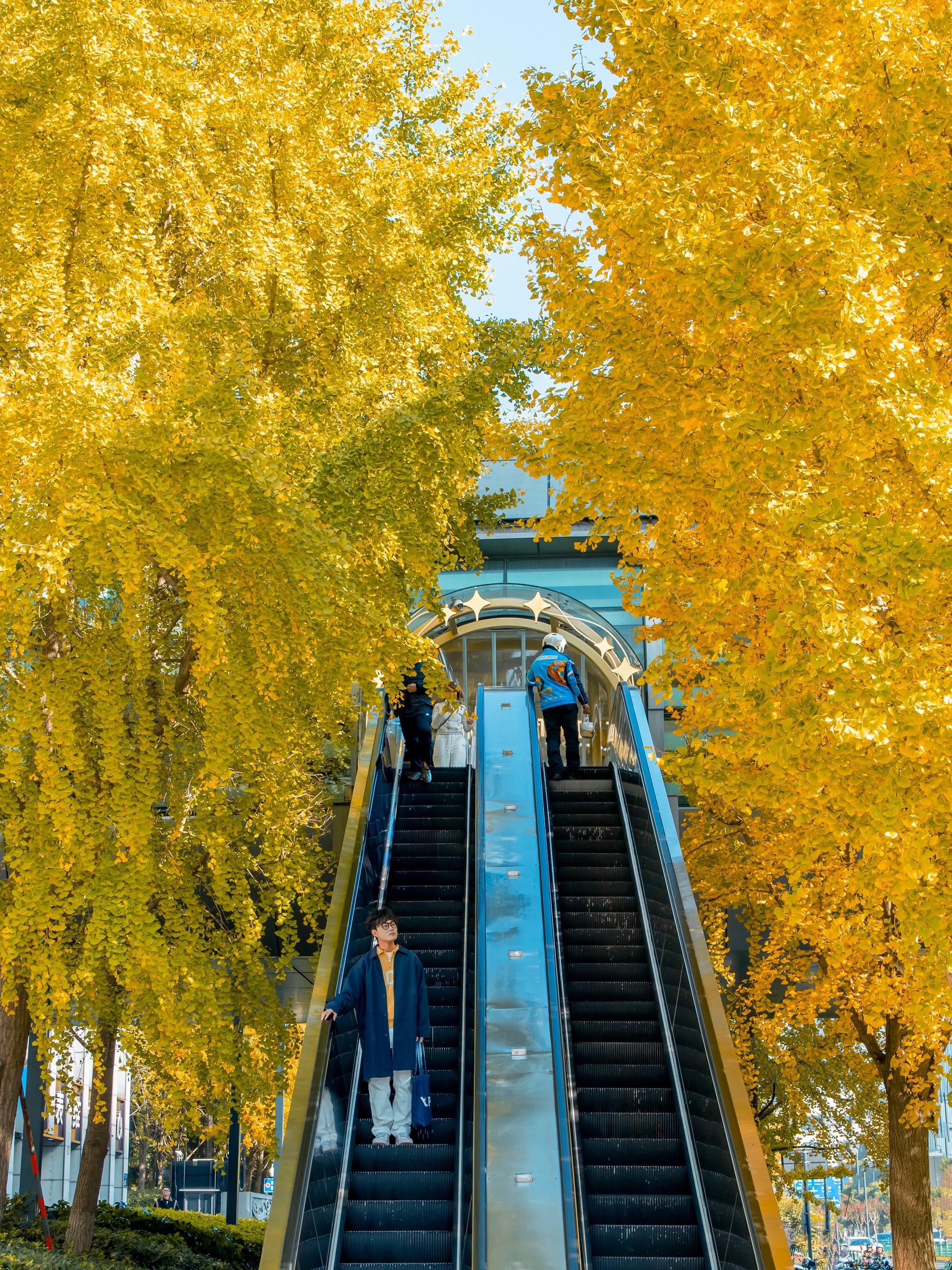 市中心的网红顶流,两棵金黄银杏包裹着现代扶梯,随手拍都是都市浪漫大片