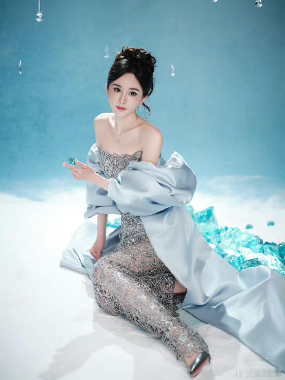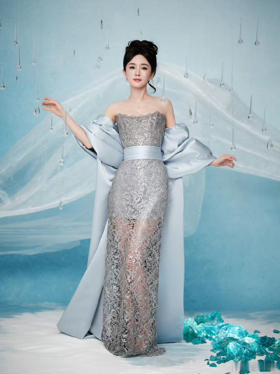 杨幂这身蓝色镂空裙绝了!高光面料衬得她肤若凝脂,镂空剪裁若隐若现超性感,清冷色调