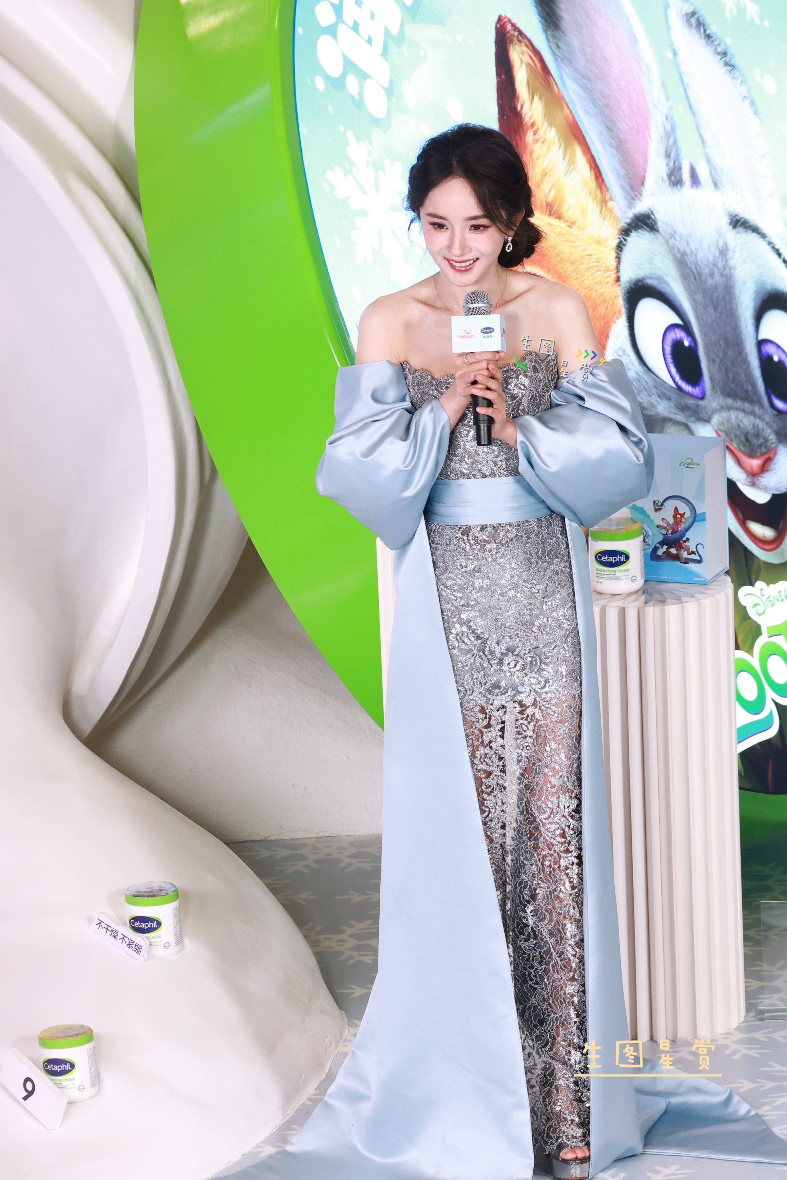 杨幂今日品牌活动生图神女美幂💙杨幂蓝色镂空裙杨幂