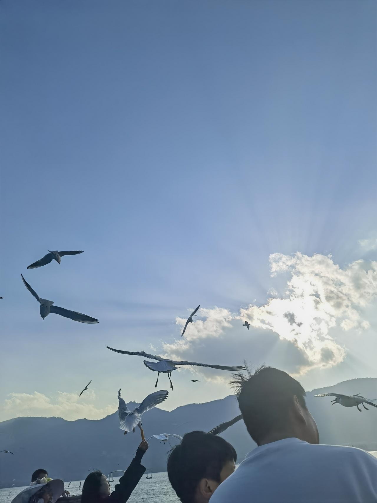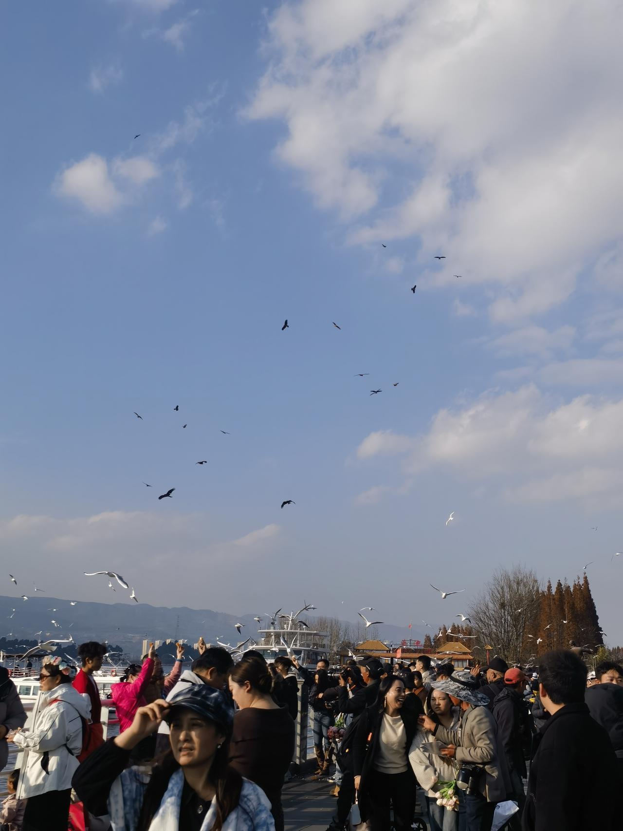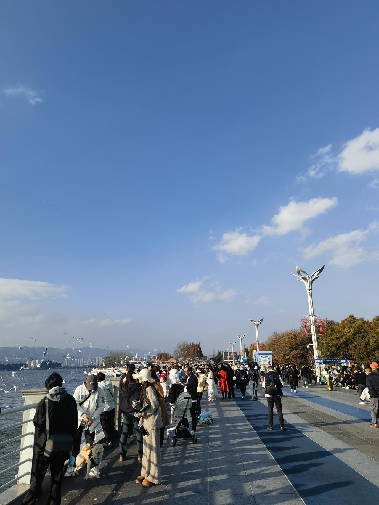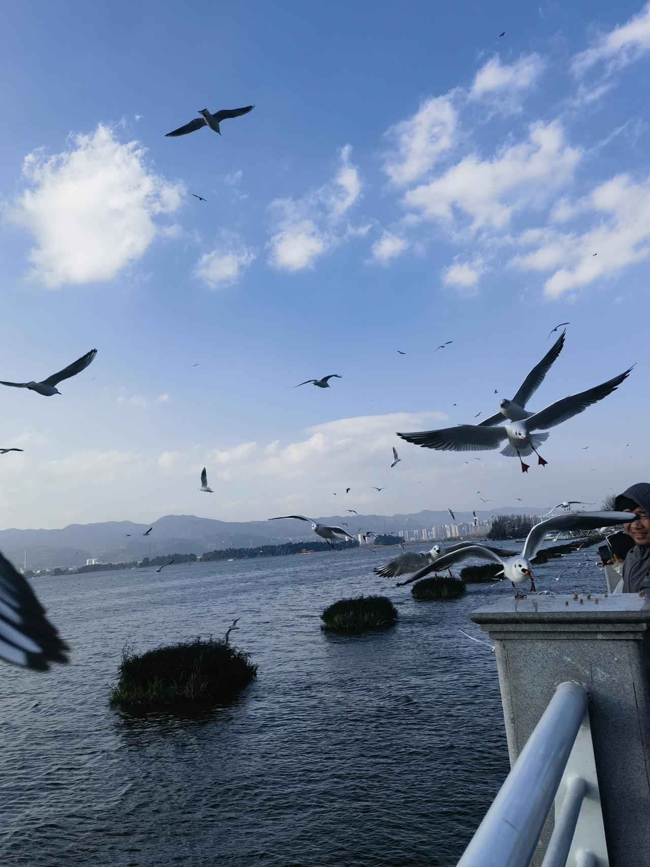 云南旅游系列篇(一) 标题:滇池 2025年12月3号,我和家人早早起床,开启了云南十天九晚游之旅。 上午10点,我们从宝安机场出发,仅两个半小时就抵达了昆明上水机场。 旅行社的接客小巴士将我们送到了下榻的酒店。签完旅游合同后,我们顺利办理了入住手续。客房条件相当不错。 下午是旅客自由活动时间。我们按照旅行社的指引,自行叫了滴滴,大约半小时就到了滇池。 滇池的海鸥,绝对是不可错过的景致。想象一下,成群的海鸥在波光粼粼的滇池上轻盈飞舞,那画面美不胜收。 在景区,我们买了些面包投喂海鸥。这里的海鸥格外可爱,它们会直接从你手中叼走食物,趣味十足。和海鸥互动拍照,每一张照片都宛如绝美大片。 到滇池看海鸥,免费且全天开放。阳光温暖,气温18度,十分适宜旅游。此时正值深秋,不过要留意,要是冬季前往,记得多添衣物,因为风比较大。 来云南,一定要到滇池与这些可爱的海鸥相遇,为旅行留下难忘的回忆。