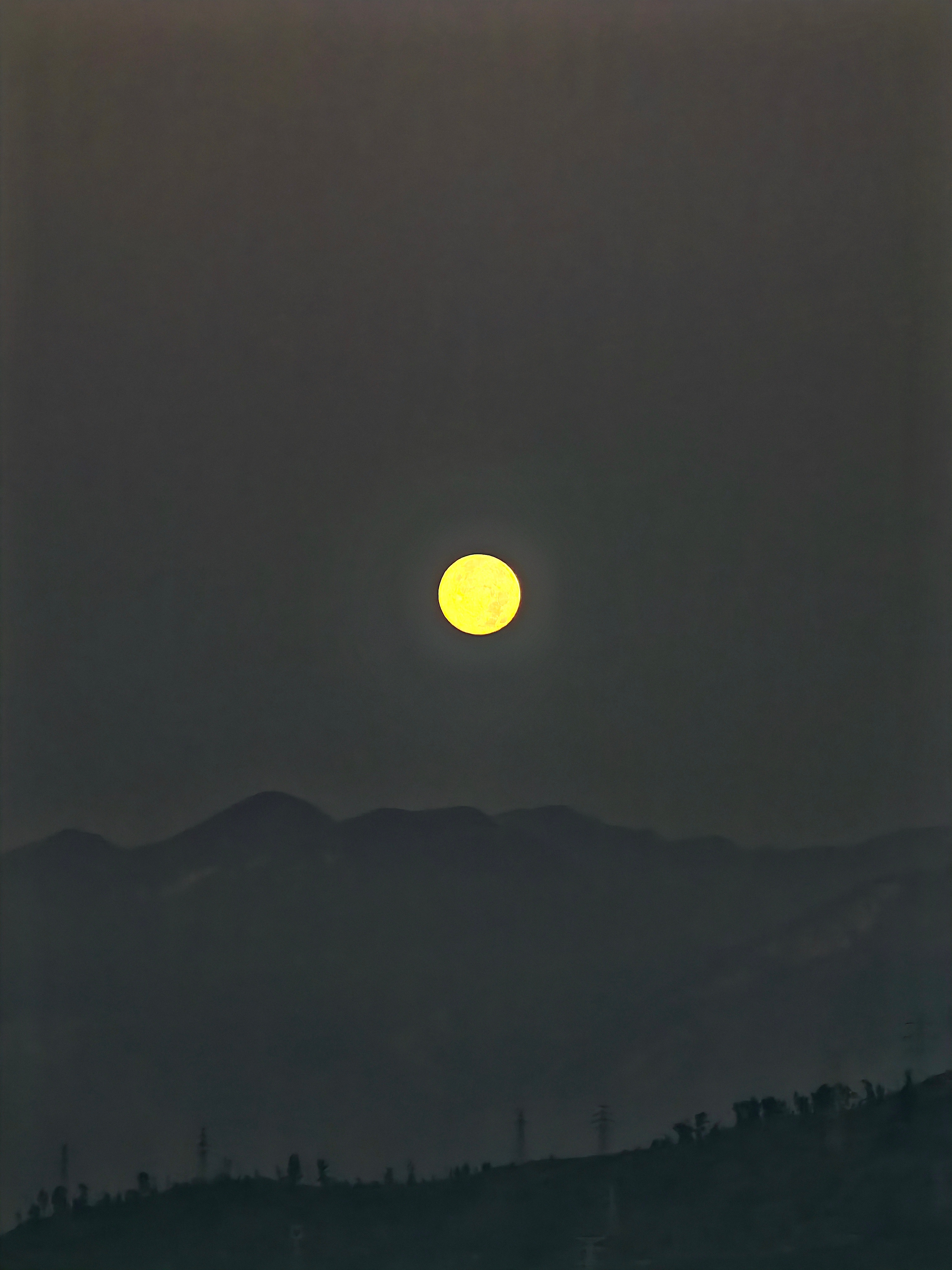 早上起来,超级月亮居然还在还是红月亮,你那里有吗?超级月亮
