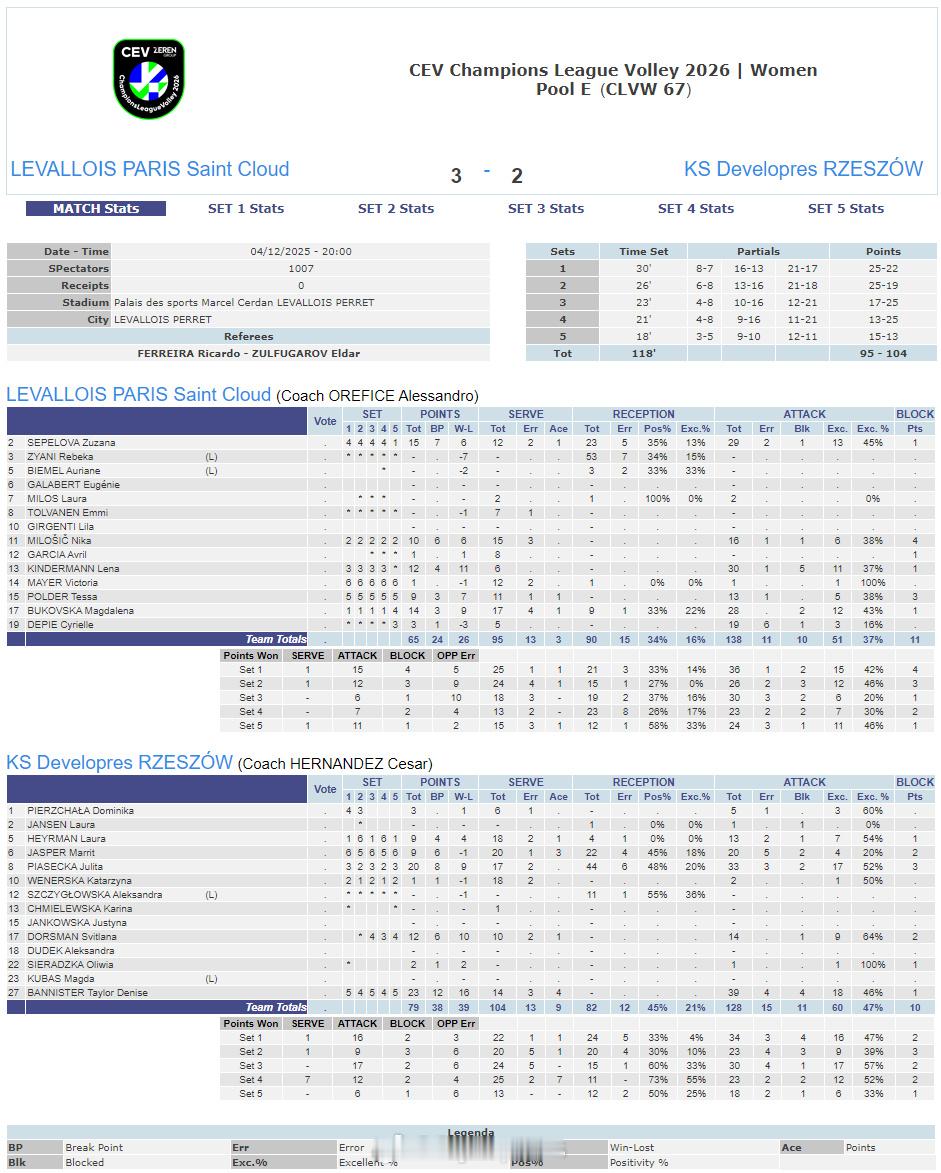 【欧冠女排巴黎3-2力克热舒夫 波兰三队全败】国际排坛战报速递 12月4日法国勒瓦鲁瓦佩雷,欧冠女排第四轮第二回合,E组法国巴黎主场3-2(25-22/25-19/17-25/13-25/15-13)力克波兰热舒夫。波兰三支球队在本回合全败。塞佩洛娃15分、布科夫斯卡14分、金德尔曼12分、米洛西奇10分、二传梅耶尔荣膺MVP,班尼斯特23分、皮亚塞卡20分、道斯曼12分。