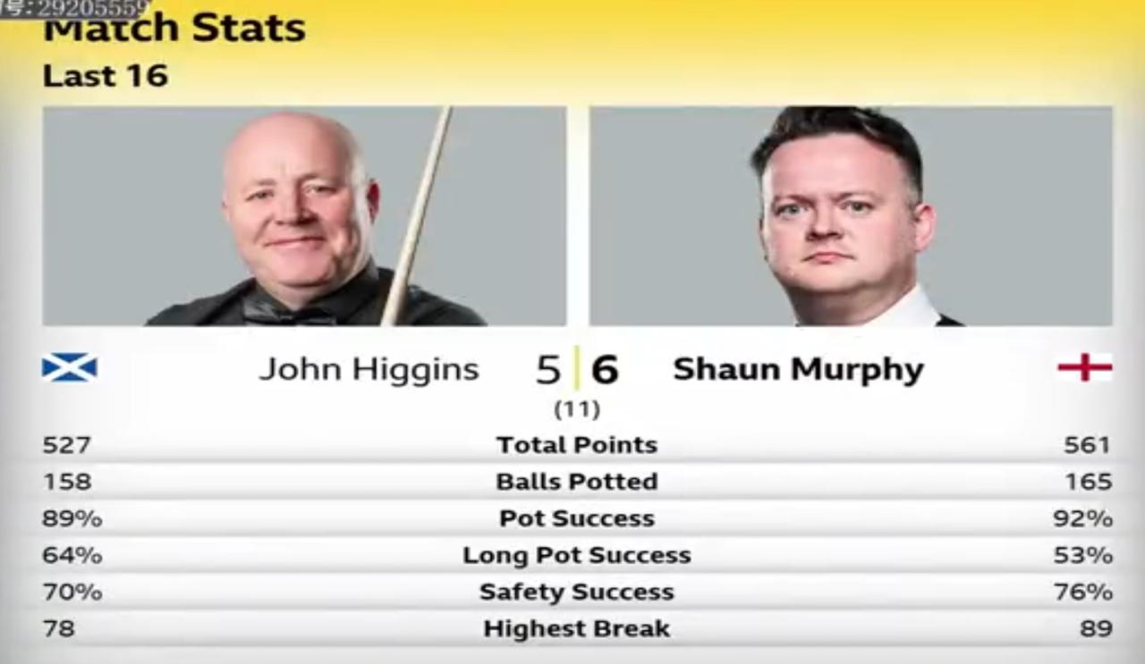 英锦赛八强产生 英锦赛八分之一决赛最后两场结果: 墨菲6:5逆转希金斯, 霍金斯6:0零封斯莱瑟。 墨菲与希金斯两人手感火热,魔术师墨菲开场就轰147,虽然失败,但取八十分旗开得胜。 接着轮到巫师表演,一波四连鞭,杆杆一杆致胜,把墨菲打到半残。 但巫师大幅领先后有些过于激进,安全球没做好,让大嘴连追两局,后巫师又胜一局,5:3,先到赛点。 巫师还是心急,中途漏机会,让墨菲连胜三局,被逆转,真可惜。 另一场,霍师傅发挥出色,把黑马光头斯莱瑟打回原形。 至此,八强全部产生: 上半区, 特鲁姆普v丁俊晖, 尼尔罗伯逊v庞俊旭。 下半区, 塞尔比v霍金斯, 墨菲v张安达。