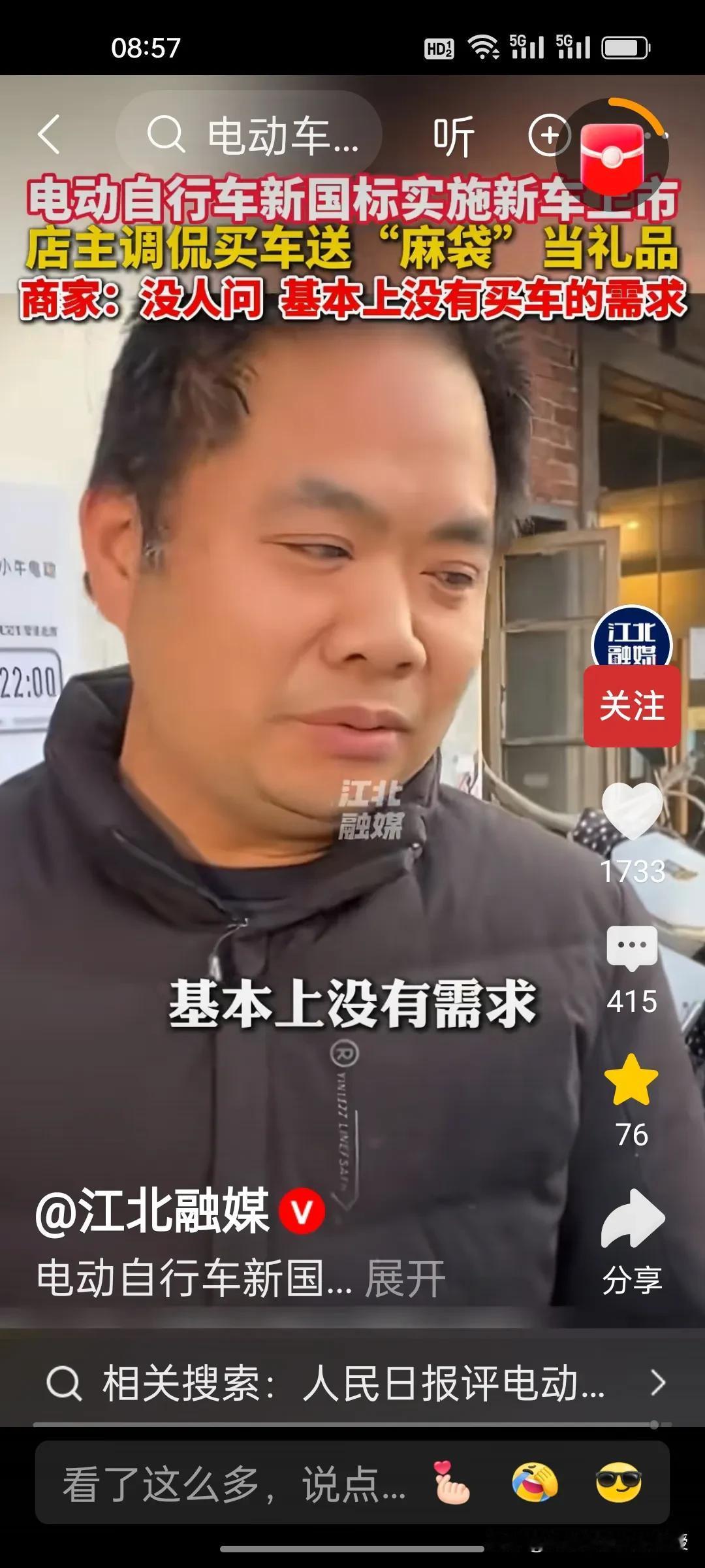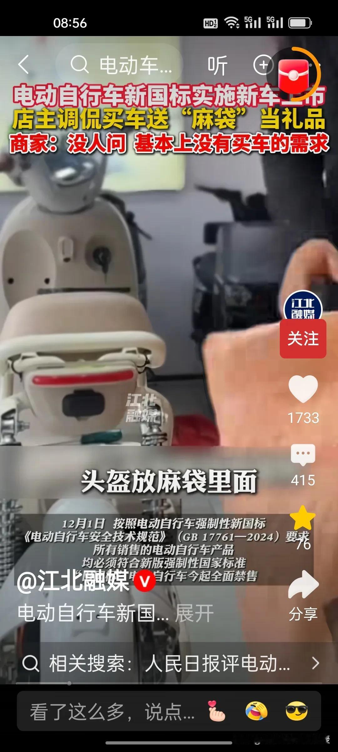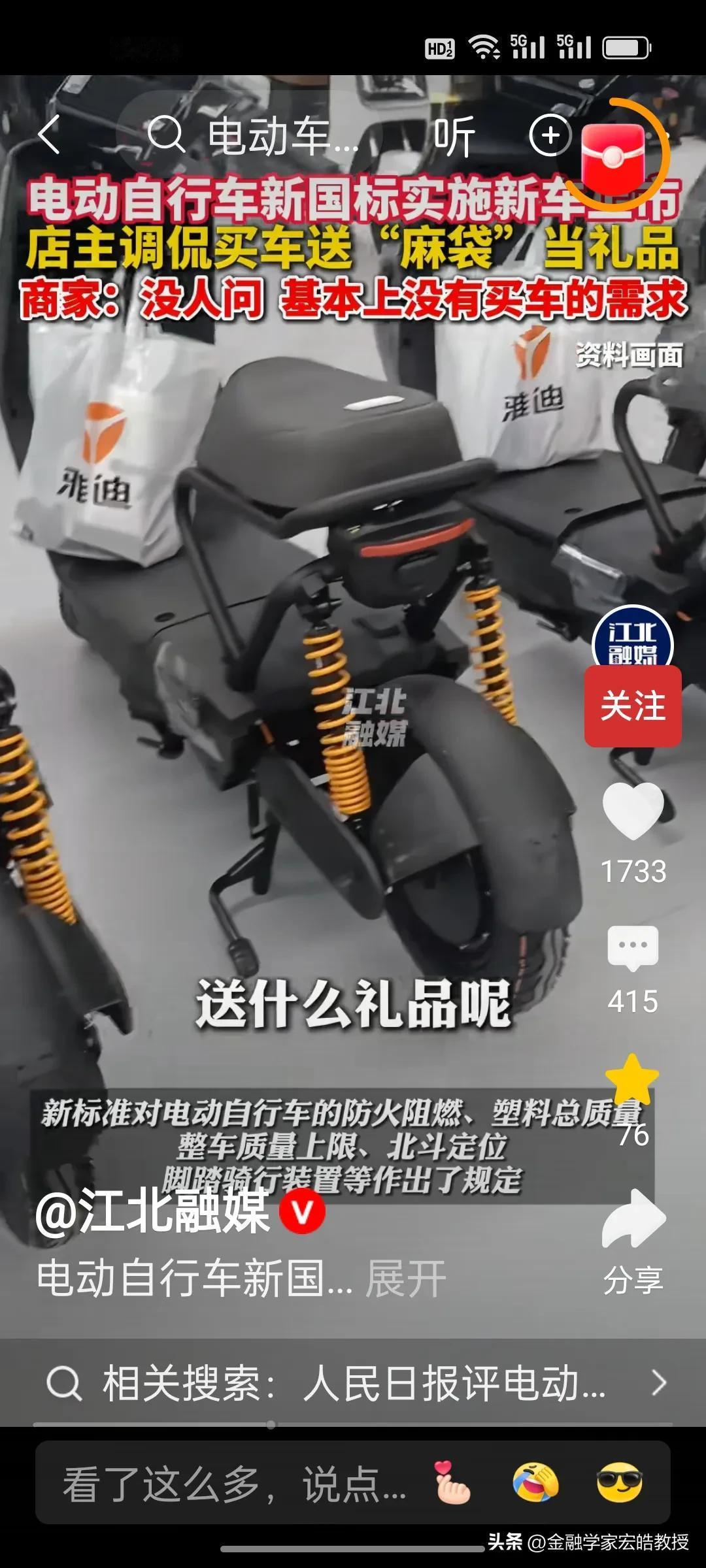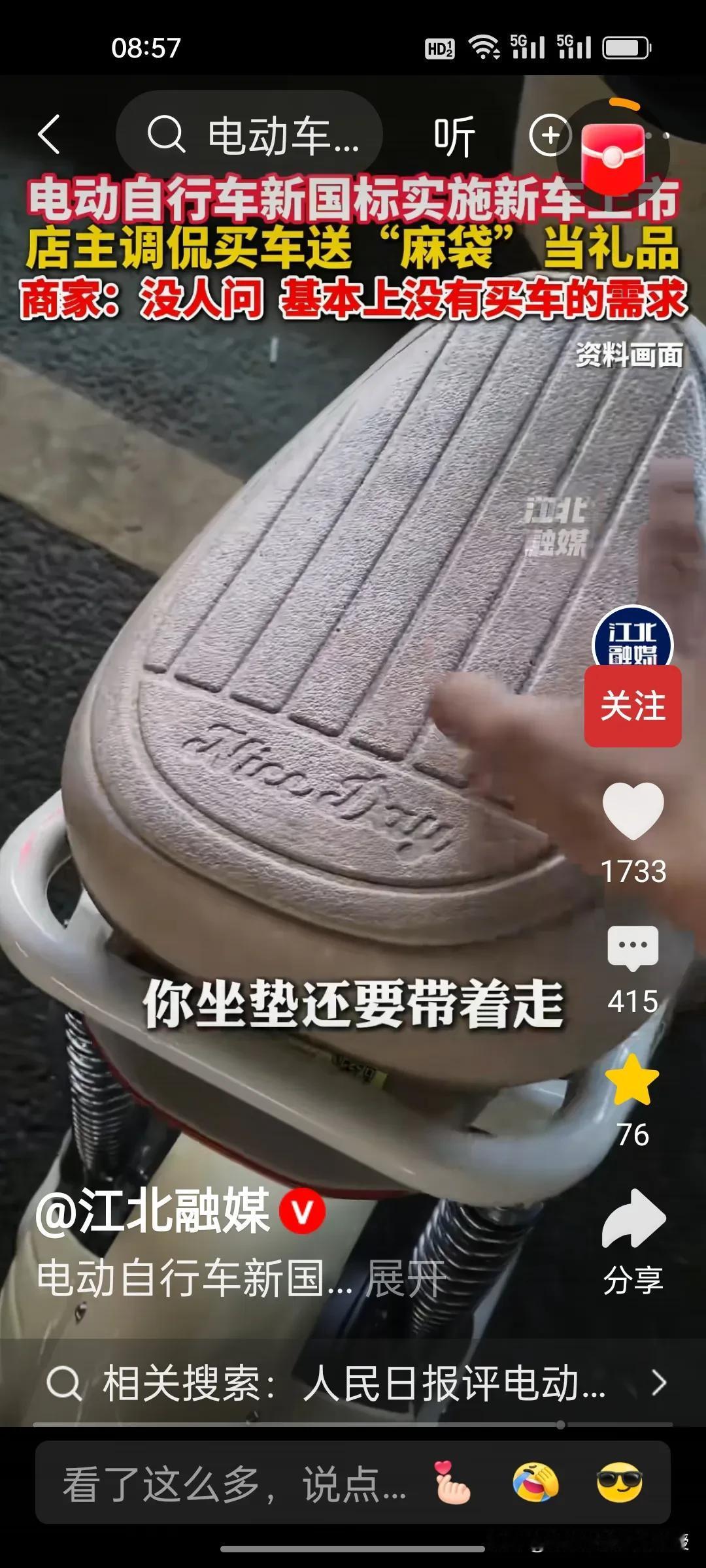 新国标电动自行车卖不动怎么办?根据《江北融媒》视频报道,这位商家琢磨着给潜在消费者送麻袋。这位店主向记者展示,自己将头盔,充电器,雨衣放在麻袋上,然后把麻袋系在座位后面的铁杆上。商家这么一番操作纯属调侃,他说店里没生意,没人来买车。有点担心要是新国标车销量一直不佳,这些商家会不会经营不下去关门呢?