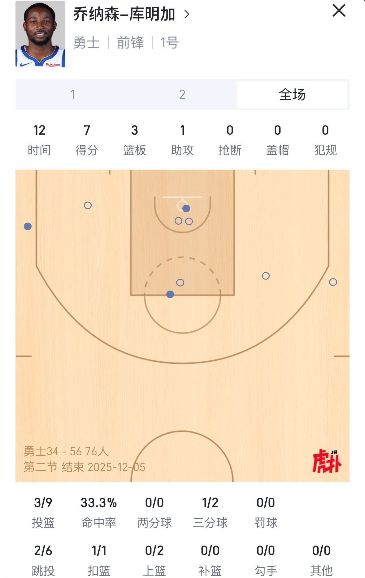 波杰库名家半场数据 俩人正负值加起来负48 来骂 勇士vs76人