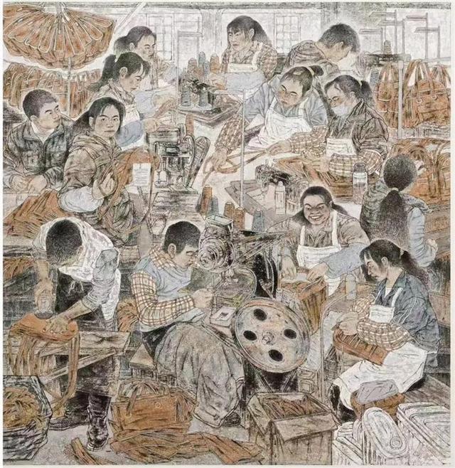 作者名称:《三来一补逢时节——记东莞第一家手袋厂》(合作)作者姓名:席卫权孙玉宝柴溪作品尺寸:240cm×230cm作品类型:壁画创作年代:2025年