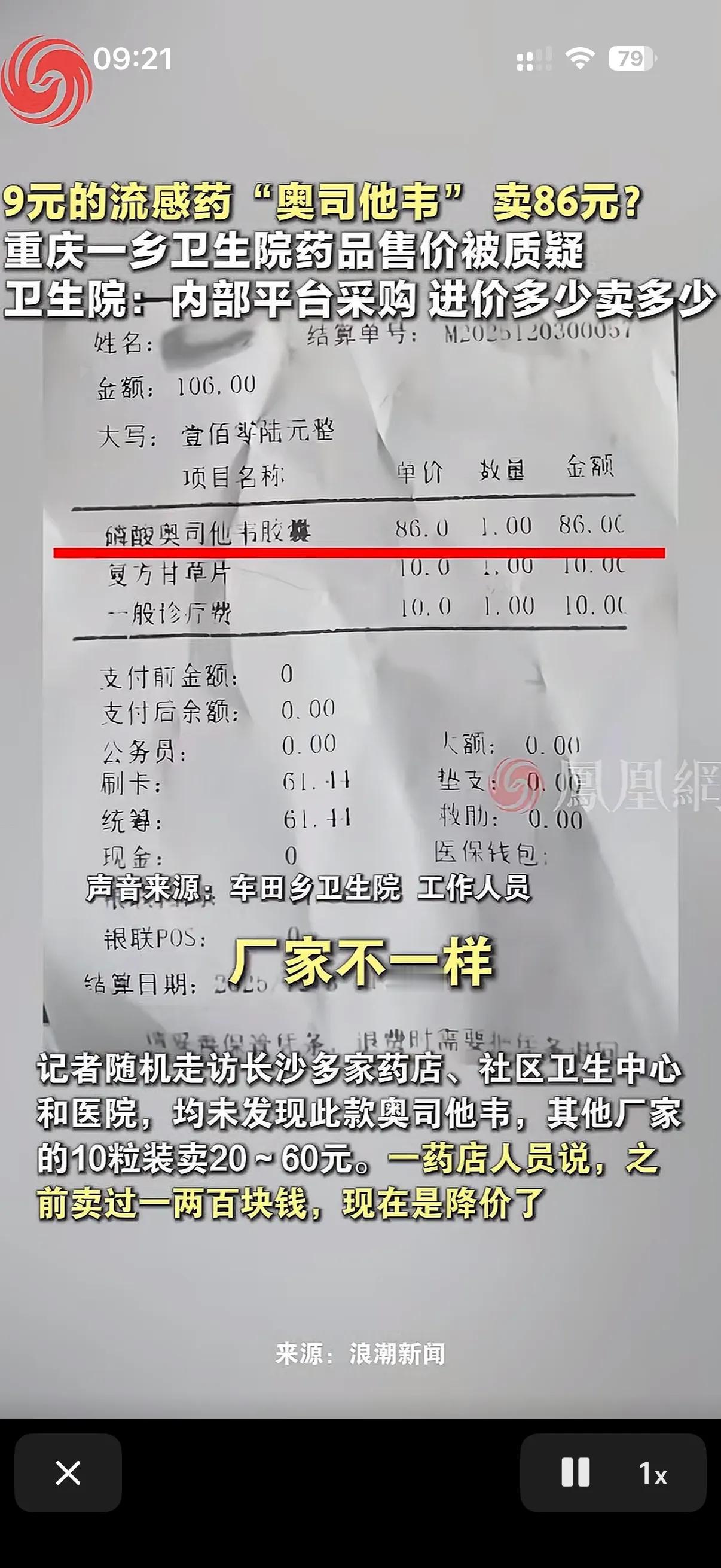 奥司他韦到底多少钱? 可以说在现在这个甲流高发的时候,奥司他韦可以说是一点都不愁卖的,但是奥司他韦现在真的一点都不贵! 奥司他韦国产版基本都是十块钱左右,但是就在前几天有位网友爆料,自己在卫生院买的奥司他韦竟然86一盒,可是同样的奥司他韦在美团平台和电商平台其实就10块钱左右,这位网友将事情反应给卫健委后,卫健委调查没有任何问题符合定价! 这也许是大家越来越喜欢在网上买药的原因了! 其实大家去医院看病可以不在医院买药的!
