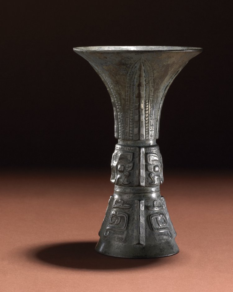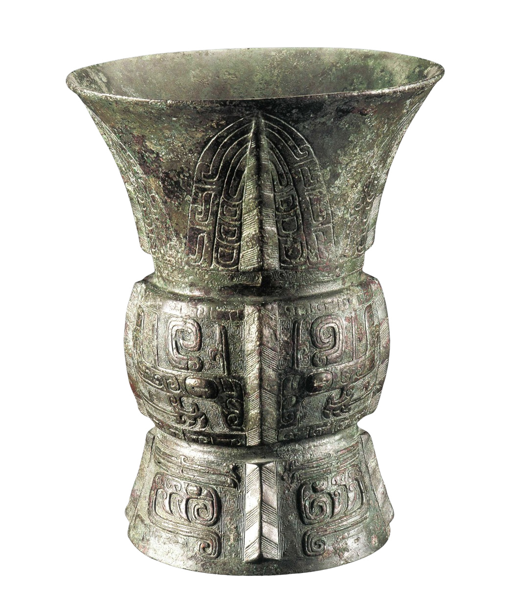 每天一件青铜器 佳士得巴黎冬季拍卖上拍一件商晚期:史觚, 与保利艺术馆收藏的传上世纪殷墟出土史尊(图3)可能是同组器物,二者铭文相同,纹饰类似,尤其是圈足的勾体变形龙纹,是非常少见的.目前在觚上的应用至少还有四例,大英藏戈祖癸觚,安阳孝民屯出土天册父己觚,滕州庄里西遗址觚,北京故宫藏X祖丙觚