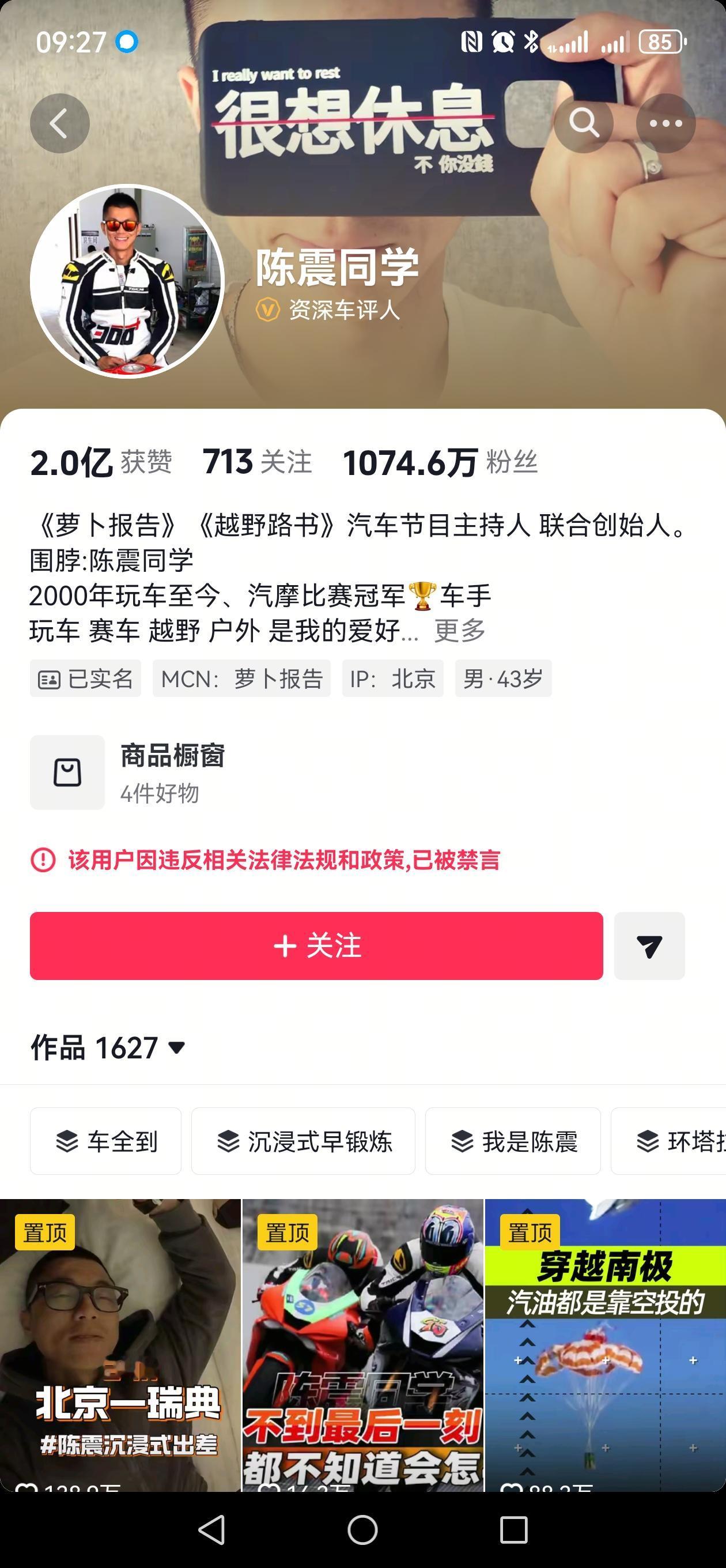 12月4日深夜,知名车评人陈震多个社交媒体平台账号出现状态调整,B站账号显示“封禁”,微博、抖音等平台则处于“禁言”状态,微博曾短暂解禁后恢复禁言,具体限制时长尚未公布。此次账号受限,源于近期其一系列事件引发的公众争议,也再次将“公众人物的言行规范与责任担当”话题推向舆论焦点。 梳理事件脉络,近两个月内的三起事件逐步引发关注。10月3日,陈震驾驶劳斯莱斯闪灵在北京发生交通事故,交警部门通报其承担事故全部责任,事发时车辆辅助驾驶功能处于开启状态。事后,陈震通过社交平台还原事发经过,称因自身过度依赖辅助驾驶、分心捡东西导致事故,多次公开道歉并承诺承担全部赔偿责任,同时提醒网友重视驾驶安全,切勿忽视辅助驾驶的使用边界。 11月27日,针对小米捐赠1000万港元驰援香港火灾的公益行为,陈震在微博评论“不管出于什么原因,但这事本身没得黑”,该表述引发部分网友质疑“语气阴阳怪气”,认为存在不当引导倾向。面对争议,陈震很快发布致歉声明,解释因表述不够严谨导致误解,强调公益行为本身值得肯定,后续会注重语言表达的规范性。 12月4日,陈震发布涉及“小米法务规模”的相关视频内容,被质疑传播不实信息,引发新一轮舆论讨论。当日深夜,其多平台账号便出现封禁、禁言的状态调整,平台未明确说明具体原因,但结合此前争议,推测与内容合规性及舆论反馈相关。 作为坐拥2400万粉丝的车圈顶流,陈震的专业车评内容曾积累大量口碑,成为不少消费者购车参考的重要来源。此次系列事件及账号受限,不仅关乎个人账号运营,更折射出公众人物的特殊身份属性——粉丝量级越大,言行的影响力越强,对应的责任与约束也应更严格。 从驾驶安全角度,公众人物的出行行为具有示范效应,陈震因分心驾驶引发事故后,主动认错并科普辅助驾驶的使用边界,这种“知错就改、以自身案例警示公众”的态度值得认可,也为广大车主敲响了“安全驾驶无小事”的警钟。从言论表达来看,社交媒体并非“法外之地”,公众人物的每一句评论、每一条内容,都可能被放大解读,唯有保持严谨克制、传递正向价值观,才能避免引发误解,维护舆论环境的理性有序。【来自懂车帝车友圈】