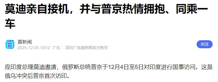 12月4号当天普京访问印度,莫迪就跟找到救命稻草一样,亲自前往机场迎接。 当地时间下午4点20分,普京的专机刚在新德里机场降落,莫迪就快步上前,给了对方一个大大的拥抱,这热情劲儿在国宾接待中可不算常见。这是俄乌冲突升级后普京首次访印,又是印俄建立战略伙伴关系25周年的关键节点,场面搞得格外隆重。 在总统府的正式欢迎仪式上,印度总统穆尔穆也亲自出席,普京还特意去拉吉加特向圣雄甘地致敬,双方的互动透着股非同一般的亲近感。 这热情劲儿背后可不只是单纯的老友叙旧,莫迪心里的小算盘打得精明着呢。说穿了,核心还是离不开印俄之间那笔离不开的军事合作买卖。 印度现在对俄罗斯的先进武器可是急得上火,这次普京来访,正好是解决刚需的好机会。 就拿S-400防空导弹系统来说,2018年双方签了54.3亿美元的大单,现在已经交付了3套,剩下的两套按计划2026年才能完成。 印度国防部长辛格早早就放话,这次会谈肯定要聊增购的事,不光是追加导弹订单,还琢磨着把生产线引进来,在本土造上两套,这笔新合同估值就有12亿美元。 除了防空系统,印度还盯着俄罗斯的苏-57隐形战机。按照印度刚发布的《技术前景与能力路线图2025》,未来15年要重点发展先进装备,苏-57这种级别的战机正好对上胃口。虽然目前还没什么消息,但双方显然已经把这事摆上了谈判桌。 俄罗斯可是印度最大的武器供应商,就算这几年采购量有所下降,根基还是没动摇。印度军队里超过60%的装备都带着俄罗斯血统,从坦克到潜艇,从导弹到战机,早就形成了依赖,想换供应商可不是一朝一夕的事。 当然了,军事合作只是一方面,能源这块香饽饽也不能放过。 2024年印度从俄罗斯进口的石油占了总进口量的36.4%,还能享受到每桶3.5美元的折扣,一年就省了22亿美元。这种实打实的好处,换谁都舍不得松手。 虽然美国一直在旁边施压,甚至加征关税,但印度嘴上应付着,身体却很诚实,该买的石油一点没少,毕竟经济发展离不开能源支撑。 对普京来说,这次访问也是巩固盟友的重要一步。在西方制裁的大背景下,印度这个既买武器又买能源的大客户简直是及时雨,既能展现俄罗斯没被孤立,又能稳住经济命脉。 双方这次还签了《俄印经济合作战略重点领域发展规划(至2030年)》,把合作的盘子铺得更大。说白了,这就是一场各取所需的双赢合作,莫迪的热情迎接,不过是把这种利益绑定摆在了台面上。 对印度来说,左手握着俄罗斯的先进武器,右手拿着优惠石油,这种好事可不是天天有的。