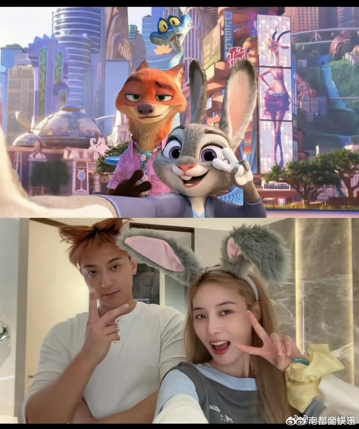 黄子韬徐艺洋cos尼克朱迪4日晚,徐艺洋晒出和黄子韬cos朱迪、尼克的视频,视频中,黄子韬用自己的头发“手搓”尼克的狐狸耳朵,过程中还不忘自恋大秀自己的肌肉!徐朱迪🐰和黄尼克🦊,太可爱啦!谁知视频晒出后,网友们纷纷表示:“黄桃,你更像牛局长!”