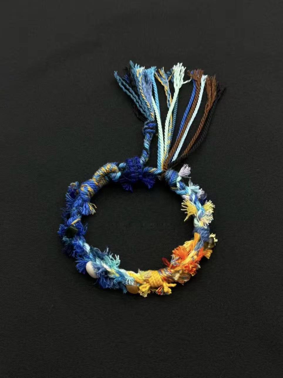藏式编绳|天蓝如洗,小河清清,秋意深沉的旷野里,一垄垄黄土堆砌的山梁,像要社火腾舞的盘龙,对峙着,跳跃着,连绵又起伏。藏式编绳 藏式编绳手链 编绳教程 复古色系