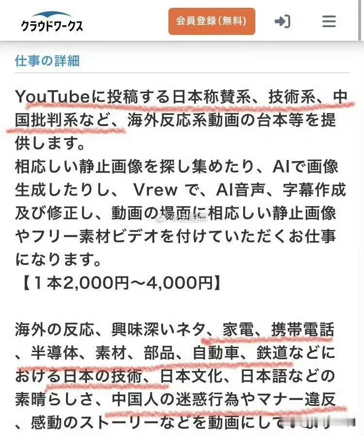 日本媒体爆料,现在在油管等平台,充斥着大量的夸赞日本和贬低中国的外包任务,比如“