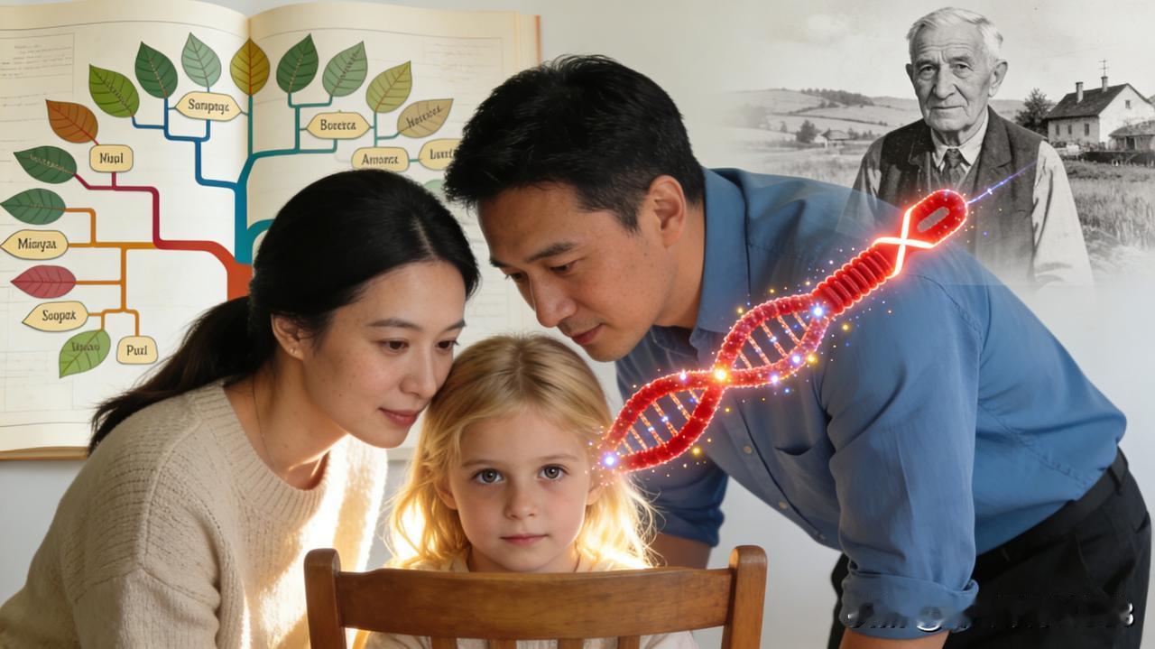 江苏一对夫妻最近发现女儿越长越不对劲 —— 小姑娘有着深邃的眼窝、金色的头发,笑起来时眼睛弯成月牙,怎么看都像混血儿。夫妻俩哭笑不得,以为是妻子娘家藏着斯拉夫亲戚,直到翻出族谱才惊觉:女儿的 "高颜值混血脸",竟是太爷爷的基因隔代遗传! 原来太爷爷年轻时曾随部队到过东欧,后来退伍娶了本地姑娘。遗传学里,这种隔代显现的特征叫伴性遗传 —— 就像血友病病人,儿子可能完全正常,女儿看似健康却成了 "基因载体",再传给外孙。太爷爷的斯拉夫血统藏在 X 染色体上,父亲作为男性本就没明显表现,女儿却像 "打开了基因开关",把太爷爷的金发碧眼、高挺鼻梁全显了出来。 这种血脉往往 "传女不传男":男性携带基因却因 Y 染色体屏蔽看不见,女性只需一个父系 X 染色体就可能把祖辈特征发扬光大。从双眼皮隔代遗传到黑白双胞胎,有些秘密,真的要等第三代才肯揭晓。