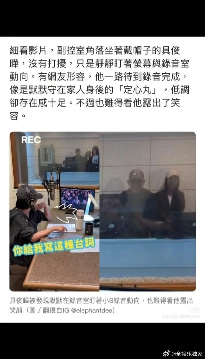 具俊晔陪小S录跨年宣传片具俊晔全程陪伴小S工作同为彼此的支撑,具俊晔全程守在小