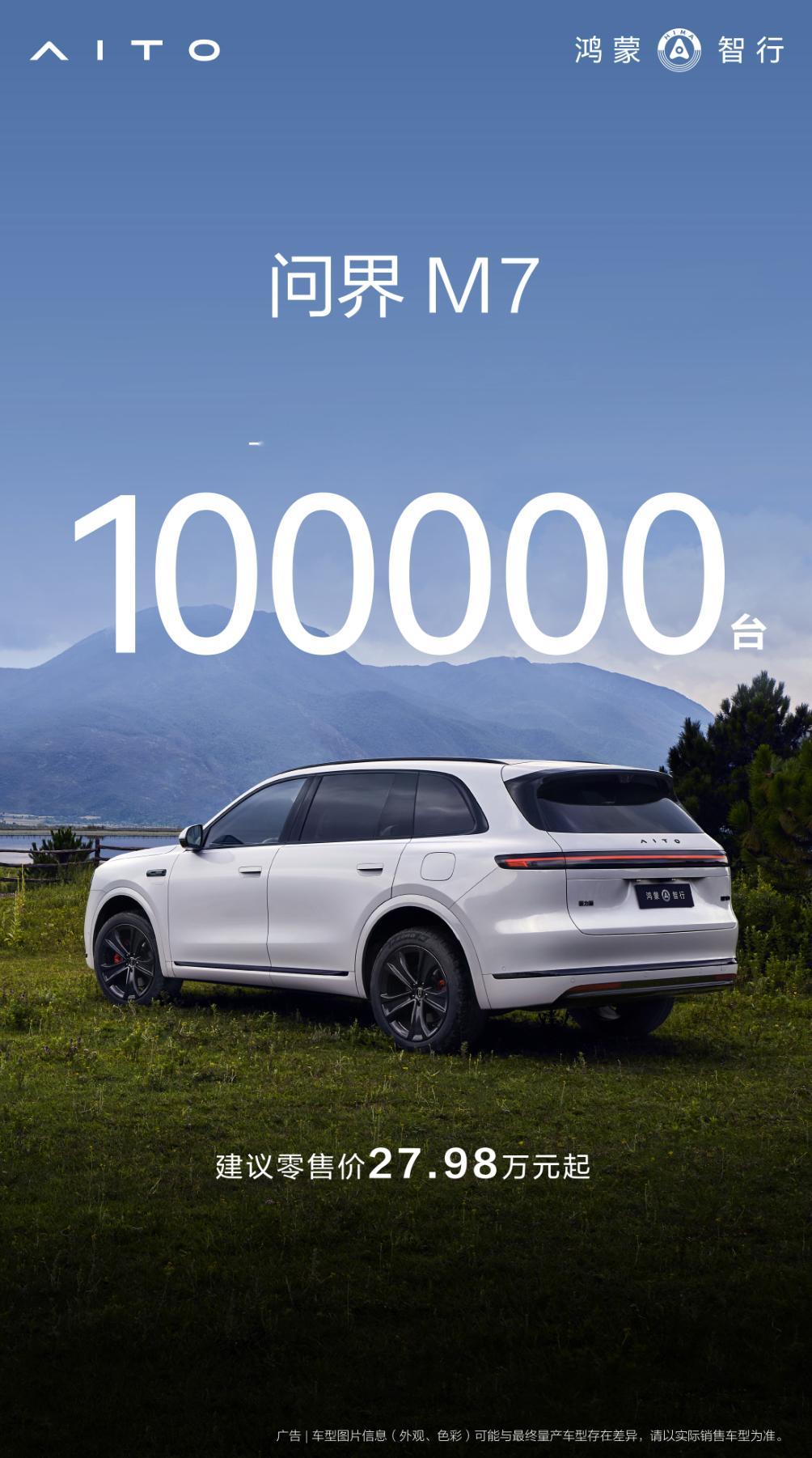 全新问界M7大定销售突破10万台上市68天交付破40000台,72天大定破100
