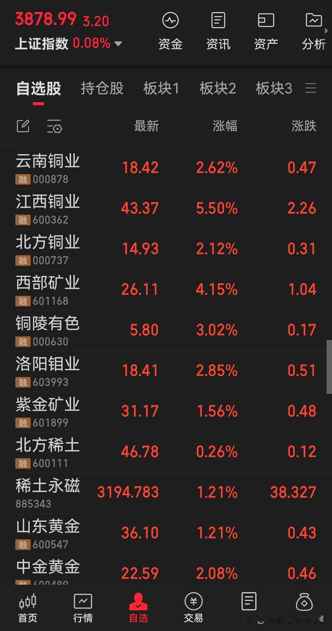 铜期货继续上涨,有色金属相关股票全面飘红,这个位置关键是保持耐心。这就是我们等待很久的高位突破的时刻。 但是,相关的股票未必会急涨,看到这种现象没必要觉得奇怪。这一点,看看黄金股今年的表现就知道了。 从表现来看,江西铜业涨得不错,云南铜业相对弱一些。 两点:一方面保持耐心,一方面降低预期。