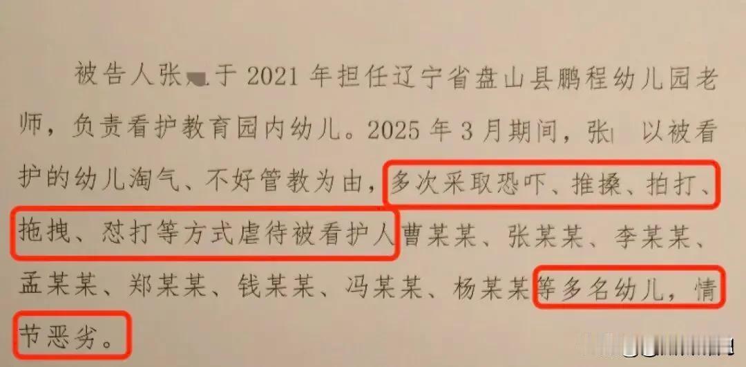 辽宁一幼儿园虐待多名幼儿案将开庭,“园长、老师等10人参与”,扇耳光、推头撞墙……[嘘] 12月4日,辽宁盘锦的幼儿家长孟先生向大河报《看见》记者透露,盘山县鹏程幼儿园虐童一案,将于12月9日在当地法院开庭审理,该案由检察院提起公诉,孟先生称已收到开庭传票,他申请了公开审理。 今年三月,有家长因孩子身上出现不明痕迹,要求查看幼儿园监控,从而发现了问题,根据检方信息,一名张姓教师因多次不当对待幼儿,已被以“虐待被看护人罪”提起公诉。 一位孟姓家长表示,他查看了更长时间段的监控,发现园内包括园长、教师等在内的多名工作人员,都存在对幼儿的不当行为,据其描述,这些行为包括推搡、强迫进食等,涉及多名儿童。 这位家长的女儿在事发后被诊断存在应激相关障碍,出现交流困难和行为异常,至今无法正常入园,目前需要持续接受心理干预和治疗。 鹏程幼儿园是一所乡镇民办普惠园,事发后当地教育局已责令其永久关闭,幼儿园法人被禁止再从事民办教育管理工作,涉事教师被开除,园内原有幼儿已被分流至附近公立幼儿园。 家长表示,当前主要诉求是希望施害者依法受到应有惩处。 看到辽宁这起幼儿园案件的进展,心里真是堵得慌,网上大家的讨论,基本都围绕着几个核心问题:为什么这种事会发生?背后到底藏着多大的漏洞?法律能真正严惩作恶者吗? “扇耳光、推头撞墙、强迫进食……这是老师还是恶霸?面对毫无还手之力的3岁孩子,怎么能下得去手?” “如果情况属实,那就不是个别人情绪失控,而是整个园所的环境和风气烂掉了,这是集体作恶,是系统性的失守。” “这不是皮肉伤,愈合了就没事,心理的创伤看不见,但可能影响孩子一辈子,家长那句‘从3月到现在没法上学’,听得人太难受了。” “目前看,检方是以‘虐待被看护人罪’起诉的,这个罪最高判三年,但如果精神障碍的鉴定结果构成轻伤或以上,并且能证明和虐待有直接关系,那就可能触及更重的‘故意伤害罪’。” “三年太短了,不足以平民愤,更不足以警示后来者,必须用严厉的惩罚,划出一条任何人都不敢触碰的高压线。” “安装监控是必要的,但监控不能代替良心的监督。” “镇上就两所幼儿园,一家公立,一家出事的普惠民办,当家长选择有限时,如何确保每一所都可靠?” 最后想和大家深入探讨除了事后的法律严惩,你觉得在幼儿园运营中,有没有什么“技术性”或“机制性”的办法能更有效地在早期杜绝或发现这类行为?如果你是当地的教育主管部门负责人,针对此次事件暴露出的问题,你会首先推行或加强哪一项具体措施?期待你在评论区的真知灼见。 信息来源:大河报·豫视频