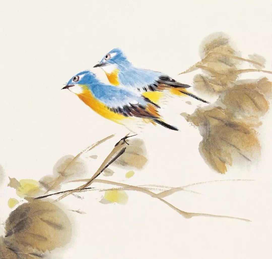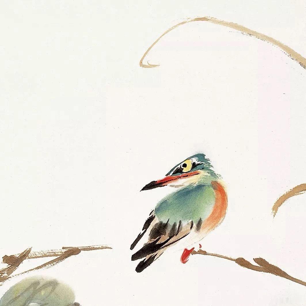 你看他笔下的鸟,羽翅的纹路像刚被风梳过,连绒毛的蓬松感都透着暖意——那不是凭空臆想的姿态,是他在北方的晨雾里蹲过田埂,看麻雀啄食时的专注;是在南方的竹林间候过黄昏,瞧绣眼鸟停在枝桠上理羽的细致。每一根翎毛的勾勒,都藏着他写生本上反复涂改的痕迹,带着露水的潮气,沾着草木的清香。 他画鹌鹑,缩颈时的憨态里带着股机灵,仿佛下一秒就要蹦跳着躲进草丛;画翠鸟,尾羽微微上翘,喙尖还沾着点水痕,像是刚从荷叶上啄过露珠,那抹宝石蓝的羽色,浓得化不开,却又亮得像能照见人影。最妙的是鸟的眼神,或警惕地瞥向枝外,或亲昵地蹭着同伴,连瞳孔里的光都透着精气神——那是他与禽鸟相伴半生的默契,是把“护鸟”的心意,化作了笔尖的“懂鸟”。 坎坷的萍居生涯,倒成了他的画稿。从北地的寒雀到南疆的鹦鹉,他见过的鸟,比住过的地方还多。那些奔波的路,都变成了滋养笔墨的养分,让他笔下的鸟,既有山野的野趣,又有书房的雅韵。旁人画鸟是画“形”,他画鸟是画“魂”——是鸟在林间的自在,是鸟对天地的依恋,更是他自己对生活的热望,借着翎羽翅尖,活在了纸上。