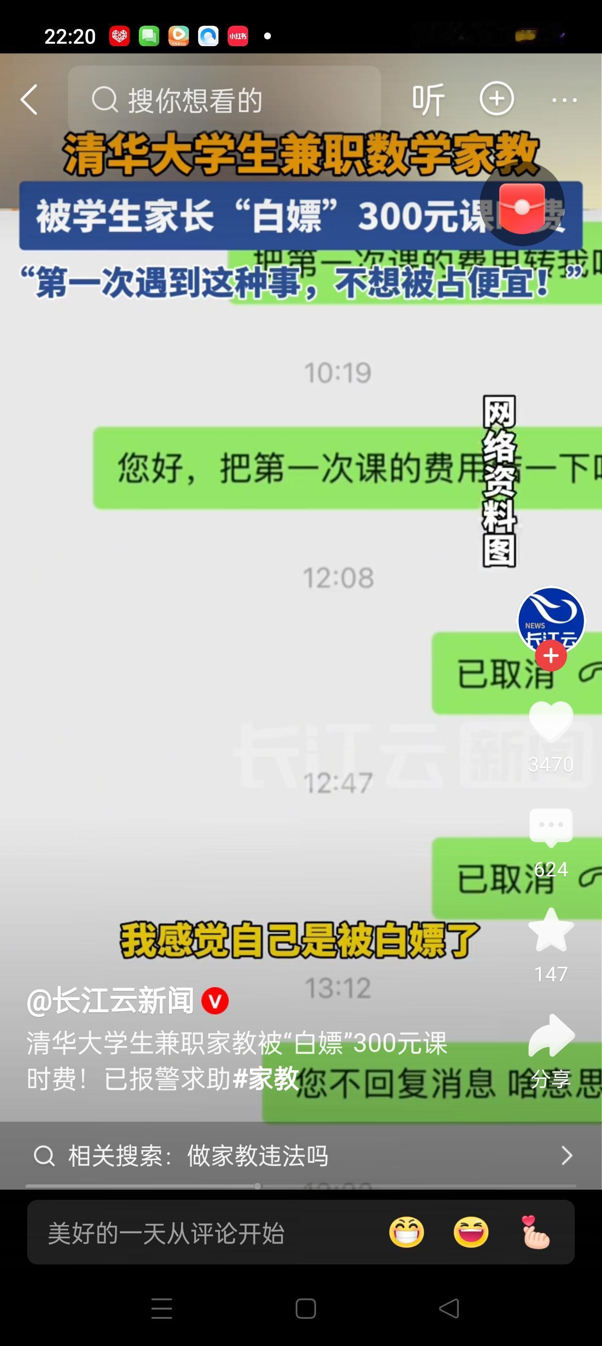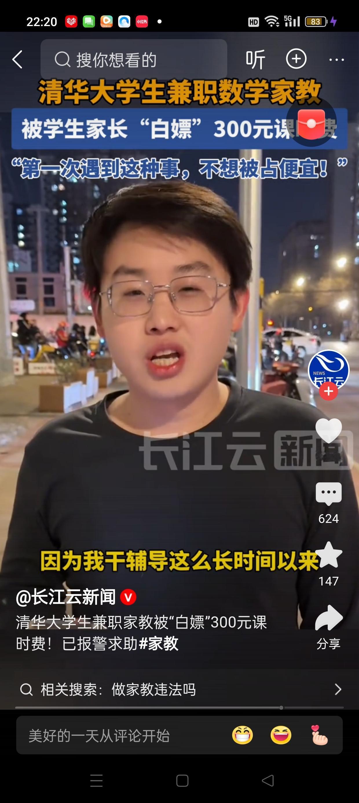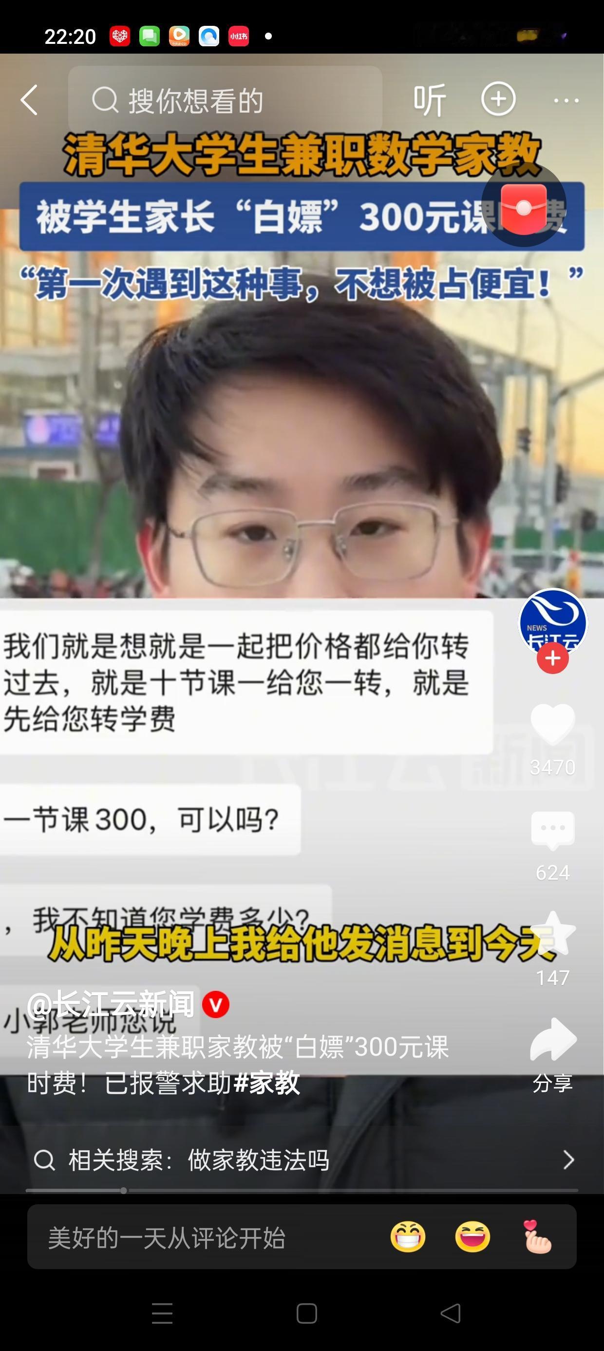 这则新闻引发了广泛关注,也让公众对“清华大学生兼职家教”的现状产生了更多思考。12月4日,关于“清华大学生兼职家教被‘白嫖’300元”的报道在网络上迅速传播,揭示了部分学生在兼职过程中遇到的困境和挑战。 据报道,一些清华大学的学生在兼职做家教时,遇到了被“白嫖”的情况,即付出了劳动,却没有得到应有的报酬或待遇。这不仅让学生感到失望,也引发了社会对兼职行业诚信和学生权益保护的关注。事件背后反映出几个值得深思的问题。 首先,部分家教平台或家长对“清华”标签的盲目追捧,导致一些学生在收费和权益方面受到侵害。虽然“清华”代表着优质教育资源,但并不意味着所有挂名“清华”的家教都能得到合理的待遇。学生和家长在选择时,应理性辨别信息,避免被虚假宣传所误导。 其次,学生作为兼职者,权益保护亟需加强。许多学生在兼职过程中缺乏合同意识,容易被平台或雇主“忽悠”或“白嫖”。这提醒高校和相关部门应加强对学生兼职权益的宣传和保护措施,建立健全的投诉和维权机制。 再次,这一事件也折射出当前兼职市场的乱象。一些不良平台或个人为了追求利益最大化,可能采取压低价格、拖欠工资等不正当手段,严重影响学生的正常权益。社会应共同努力,规范市场秩序,打击违法行为,营造公平、公正的兼职环境。 最后,公众应理性看待“白嫖”事件,既要关注学生权益,也要认识到兼职行业的复杂性。作为学生,应提高自我保护意识,签订正式合同,保存证据;作为家长和社会,也应加强监管和引导,推动行业健康发展。 总之,12月4日的“清华大学生兼职家教被‘白嫖’”事件,提醒我们在追求优质教育资源的同时,更要关注权益保护和行业规范。只有共同努力,才能让兼职市场变得更加公平、透明,让每一位努力的学生都能得到应有的尊重和回报。