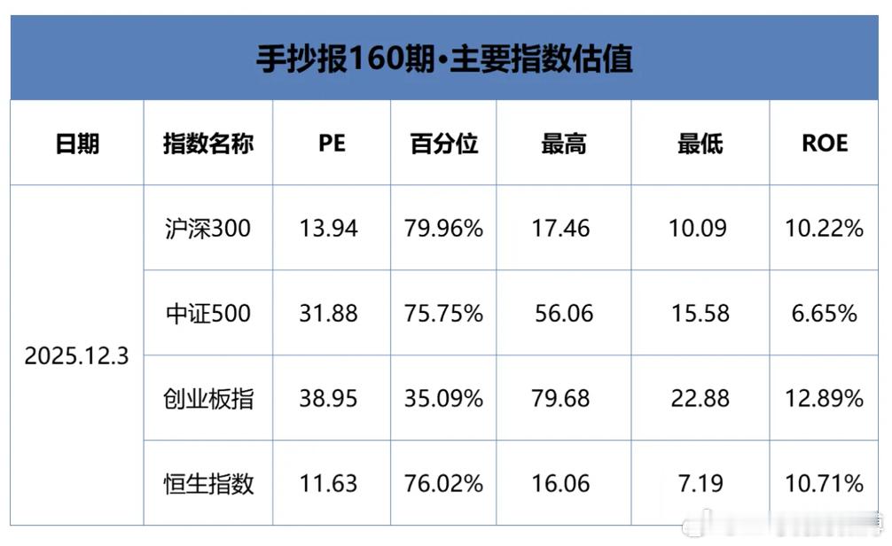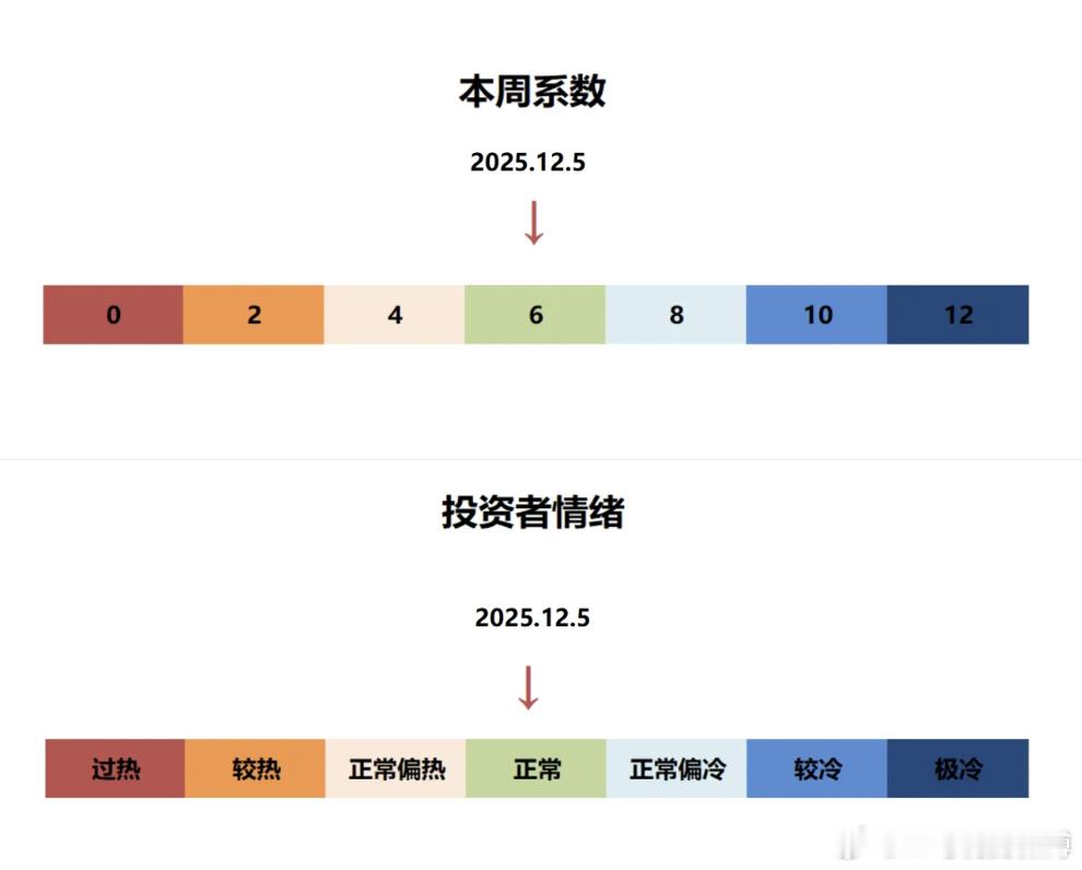 手抄报|160期:股债双弱,情绪下调一档1、一周市场盘点:本周A股缩量反弹,大强小弱。具体来看,创业板指上涨,创业板综指下跌;科创50指数几乎没有下跌,但科创综指下跌。中证A500小幅上涨,但中证500/1000/2000指数均在下跌。两市成交额萎缩至1.5万亿附近,较8月份高峰时刻缩水一半,仅维持有色金属、通信等少量热点,白酒、传媒、计算机等行业本周回调明显。2、估值变化:与上周相比,四只代表性指数估值变化不大,但小盘股指数则有一定的降温。3、市场情绪:正常1)社区活跃度:市场赚钱效应较差,社区发帖肉眼可见下滑。三个月前对科创成长板块的普遍性乐观,如今分化很大。社区中,本周讨论高端白酒持续跌价的帖子较多,前几年部分声称是长期价投的用户,如今噤若寒蝉。2)媒体传播指数:本周债市持续回调,媒体较为关注,中债新综指、中债7-10年久期的债券指数基金,年内收益转负,投资者的担忧情绪浓重。国有大行全面停售五年期大额存单、豆包智能手机搅动市场但伴随争议声、白银价格大涨、年度权益类冠军基金基本确定,摩尔线程周五上市,也都有一定传媒热度。3)与投资者互动:在本次调整中,投资者加仓权益类基金的意愿不强。仓位适中的投资者,当前更倾向于先加仓偏股混合型基金,在没有较大把握的情况下,不敢把仓位上得太满。4)新发基金:本周新发权益类基金的热度有所下降,上周关注度较高的中证科创创业人工智能ETF,截至周三仅有两只提前募集结束。一只由绩优权益基金经理参与管理的新发固收+,募集规模约7.7亿,也低于预期。4、结论 本周系数:65、实证:无操作6、其他分享:长期投资并不是固化看待投资标的,也不是熟读投资家经典名句、观点就能一劳永逸的。过去超额收益多的板块、行业,都有具体的归因,也都有一定的周期性。错把变化中的幸运当做永远,买在情绪高、估值高的时候,后续的均值回归让人痛苦。动态看待市场,观点与动作随着世界的运动而变化,有买有卖,有助于保持组合的活力与合理性。