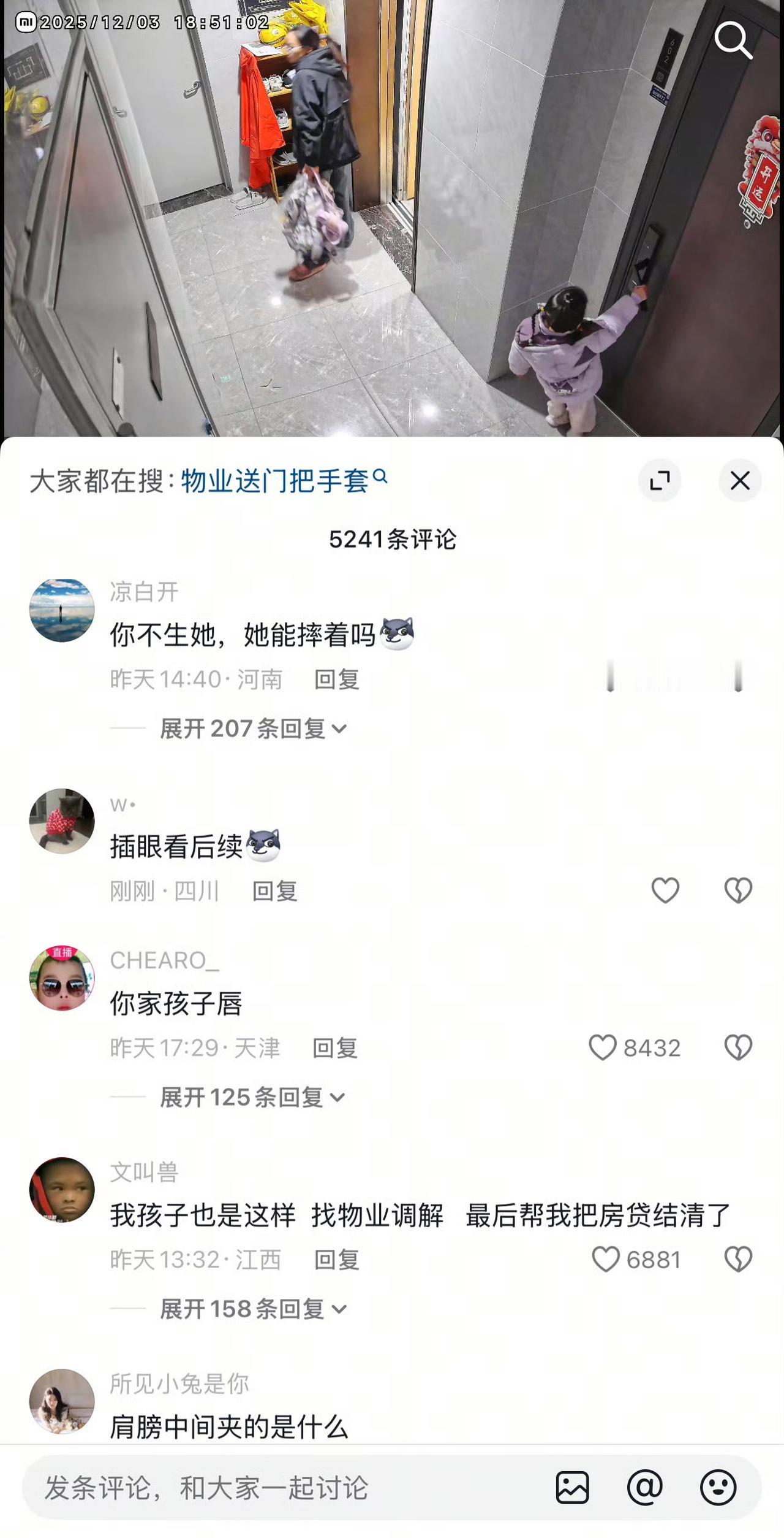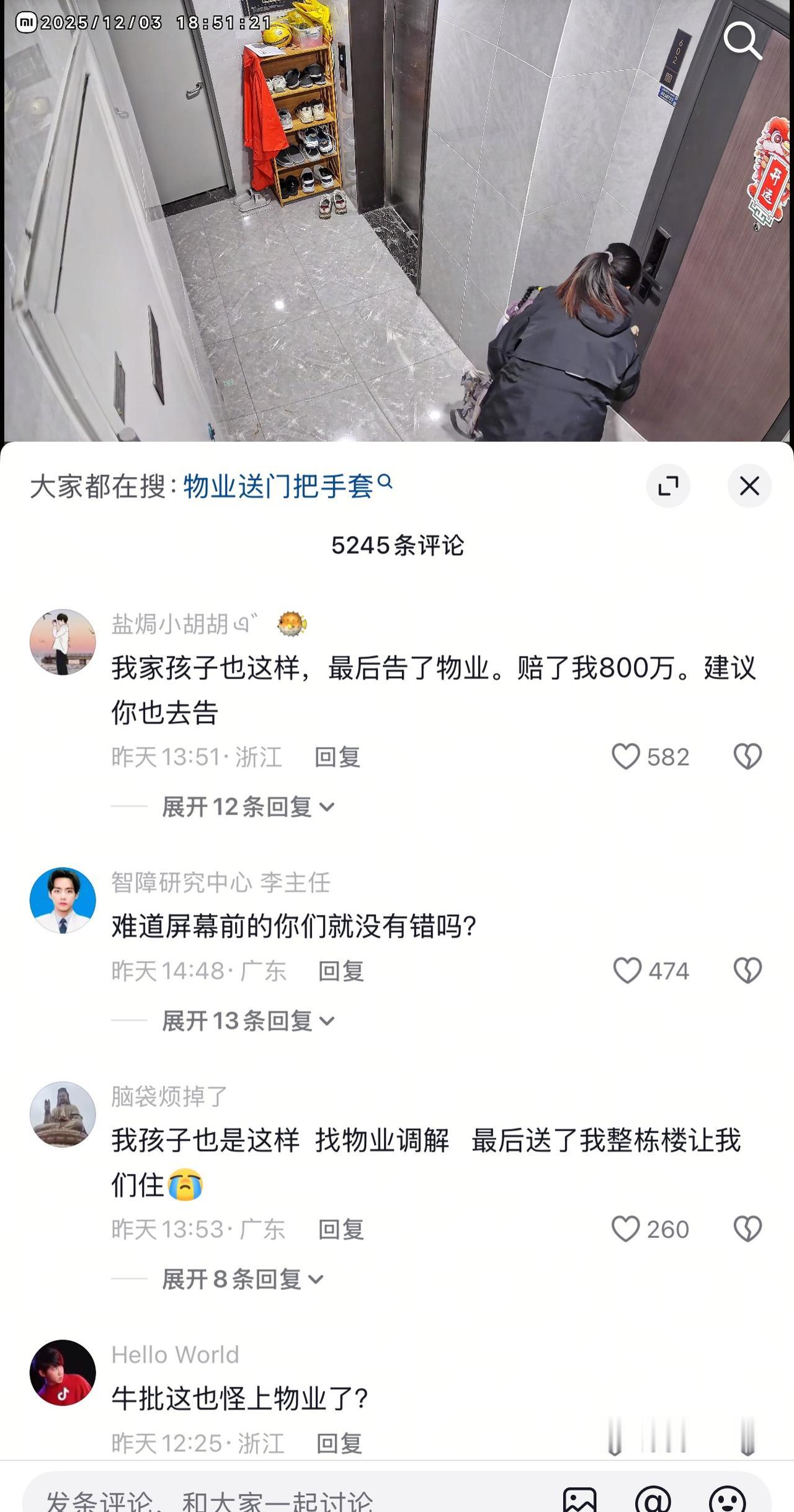 孩子玩门把手摔跤,妈妈找物业索赔,怪他们的门把手套滑,视频发出结果评论区炸了。众多网友纷纷支招,说一定要找物业。其中一个网友说,她孩子之前摔了,物业赔了800万。还有一个网友说,物业赔了她一栋楼。要收集证据,赶紧去告,不要晚了他们不承认了。孩子摔门 女童砸伤男童 娃摔断手了 家长赔7000