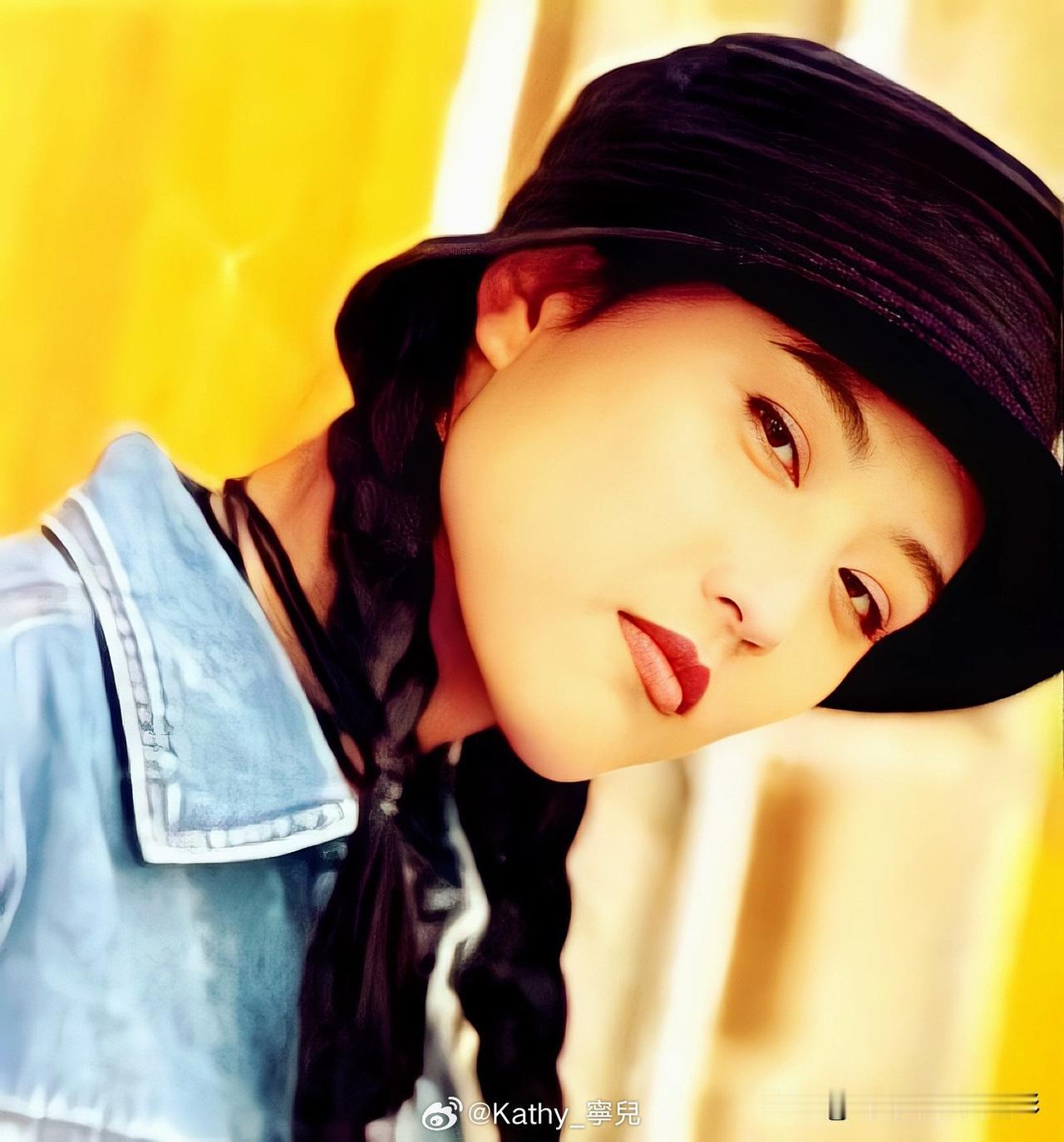 周海媚女神美照📸 牛仔衣裹着松垮的随性, 黑帽压着麻花辫的软, 红唇咬着笑意, 眼尾是漫不经心的勾。 旧相里的周海媚, 连抬眼都带着“我自明媚”的底气。周海媚 周海媚写真照 港星