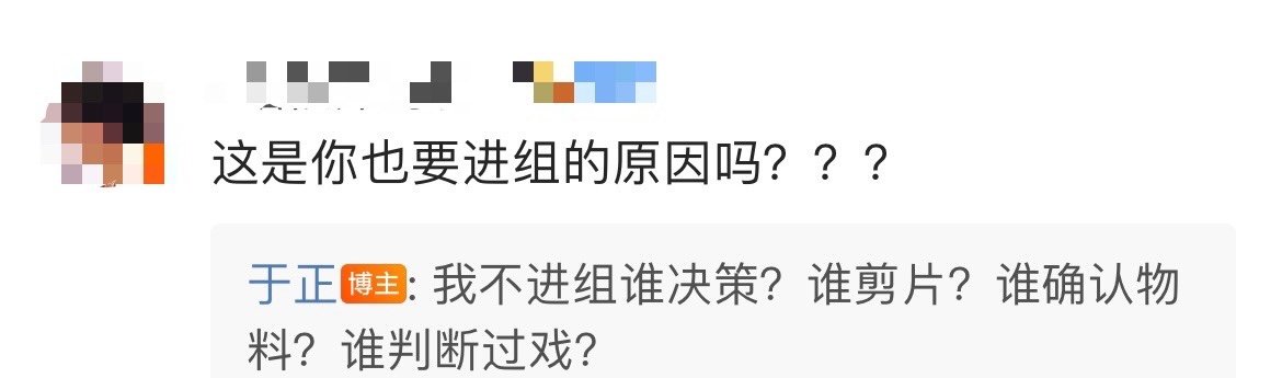 于正回应进组金吾不禁金吾不禁剧组日常比帅于正发了《金吾不禁》剧组日常比帅视频,称:“帅哥多的剧组就是这么可可爱爱。”随后,于正又在评论区回应进组《金吾不禁》,称:“我不进组谁决策?谁剪片?谁确认物料?谁判断过戏?”