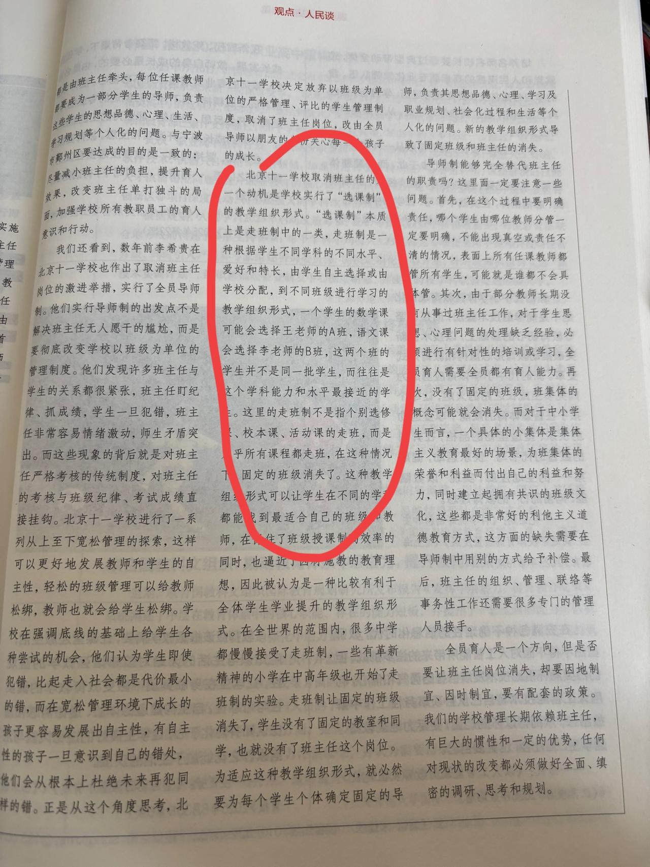 现在有些地方学校尝试取消班主任这个职务了! 主要原因是每年学校分配班主任时,很多老师都强烈反对。主要原因班是班主任工作压力太大了,事无巨细,什么事都要管。再者大部分学校班主任津贴也就只有几百元。《人民教育》中有篇文章《班主任岗位能取消吗》反映,哪怕有些学校班主任津贴开得很高,也没人愿意当。它还是比较客观地反映出了当代班主任工作的难度。 文中列举了浙江宁波鄞州区的学校开始实行德育导师制度,并逐渐取消班主任职位。这个还真不知道效果如何,尤其是对于小学生来讲走班制能够实行吗? 走班制的好处是可以让学生自己选择想听的课,选择想要的老师。但最大的问题是班级这个团体将消失,班级文化理念也要消失。这些导师制能够弥补过来吗? 基础教育不断在改革,这折腾那折腾,就像魏书生校长说的有必要这样子改来改去吗?或许给班主任减轻压力与负担,削减他们不应该承担的责任,提高班主任的待遇才是解决问题的根本办法。大家觉得呢?