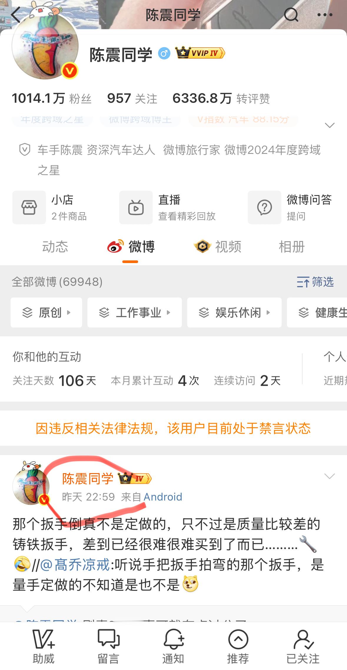 陈震回应被全平台禁言 小号是刚刚被禁的吧