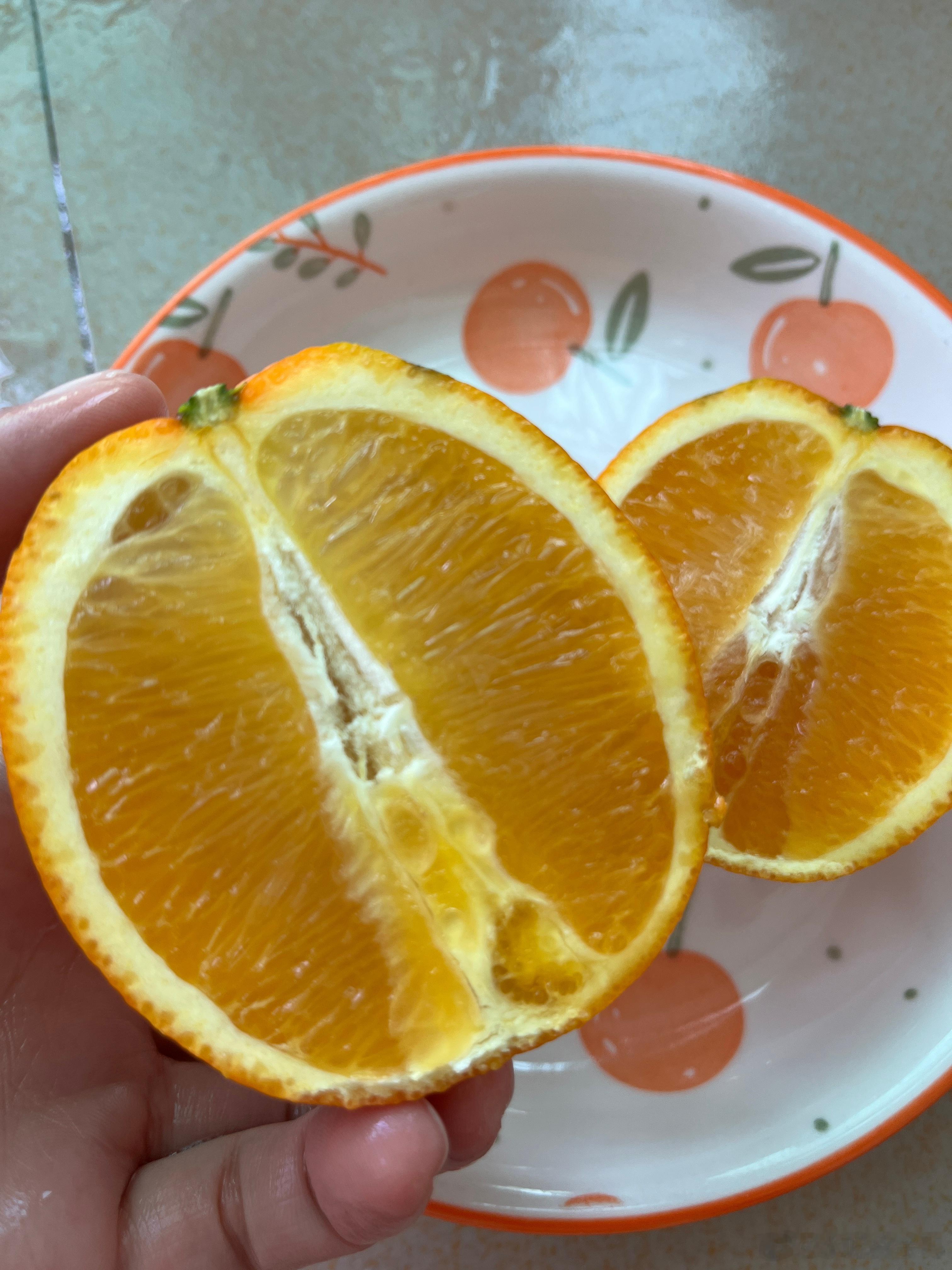 熊姐的橙子收到了,本来要由女儿来开箱的,她忘记了,那就由我来吧!看得出来是没打蜡的,汁水饱满,甜度也够。我减肥切个小的来吃,吃一个就好,剩下都留给娃吃。最后祝熊姐橙子大卖,暴单暴富