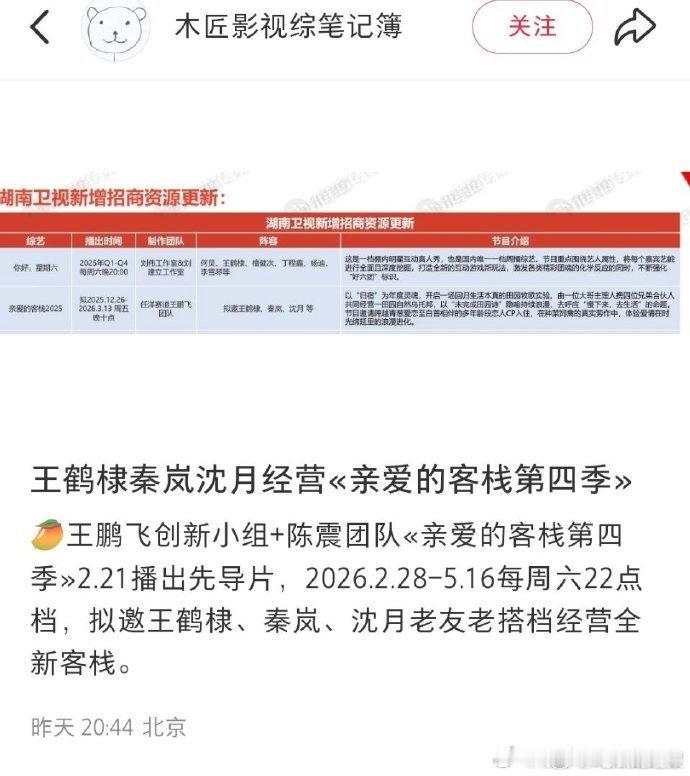 亲爱的客栈4拟邀王鹤棣秦岚沈月亲爱的客栈4拟邀王鹤棣沈月《亲爱的客栈 4》拟邀阵