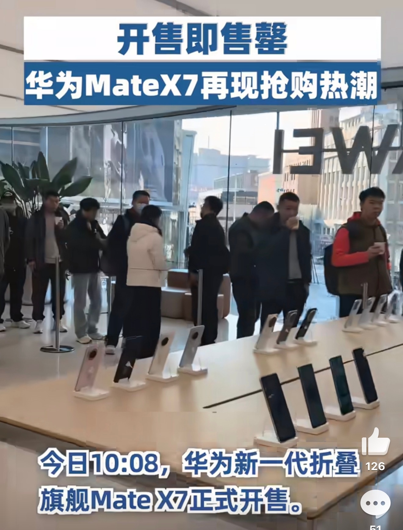 折叠屏集大成之作——华为Mate X7,还是一如既往的火爆呀!线下门店都是看折叠手机的朋友,今年这个设计是真好看,已经排上队了,希望早点拿到新机。华为MateX7再现抢购热潮华为MateX7全色售罄