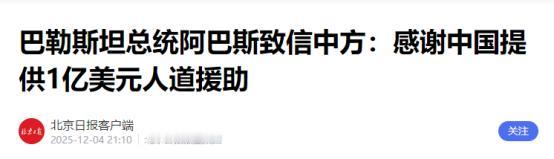 真是大国风范,每当别的国家受到灾难,中国都会挺身而出,这次中国又向巴勒斯坦捐赠一亿美元。 现在一说起“大国风范”,可能有人觉得是空话套话,但咱们中国用实打实的行动,把这四个字做得明明白白。别的国家遇上难处,咱们从不是站在旁边喊口号,而是真金白银、真材实料地伸援手,最近给巴勒斯坦捐的一亿美元就是最好的例子。 2025年12月,巴勒斯坦总统阿巴斯专门给中方写了感谢信,字里行间全是真情实感。这时候的加沙地带正遭遇前所未有的人道主义危机,老百姓缺吃少穿,看病也成了难题。 咱们这一亿美元不是随便给的,专门用来缓解当地的危机,还得帮着搞早期的恢复重建。其实这不是临时起意,早在2025年11月,中国驻巴勒斯坦办事处就已经给约旦河西岸的难民营送去过毛毯、电暖器这些过冬物资,足足帮了2000个贫困家庭。 65岁的巴勒斯坦老人奥达拿到物资时说,这让他们更有坚守家园的信心,这话听着就让人心里一暖。不光是巴勒斯坦,咱们对巴基斯坦的援助更是把“患难见真情”刻在了骨子里。 2022年巴基斯坦遭遇了历史罕见的特大洪灾,整个国家一半的土地都泡在了水里,50多万人无家可归。消息刚传过来,咱们国家就立刻行动,先是紧急拨了一亿美元援助。 紧接着各种物资就源源不断地送过去——2.75万顶帐篷、11万条毛毯、1万箱压缩饼干,还有净水设备、发电机这些急需的东西,甚至连200吨洋葱、10吨番茄这种民生食材都考虑到了。 物资到了还不算完,中国国际救援队连夜出发,成了第一支进入重灾区特达地区的外国救援队。当地气温高,队员们穿着全套防护服工作,一天下来浑身都能拧出水,不少人中暑了挂着盐水还在坚持。 他们在灾区搭起流动医院,每天要接诊六七百人,二十天里就看了11000多个病人。巴基斯坦人记着这份情,有个18岁的保安退烧后,拉着中国医生的手喊“妈妈”。 临别的时候,老百姓把家里最珍贵的披肩、手镯塞给队员,说“虽然记不住你们的名字,但你们都叫中国”。这份情谊,比任何客套话都金贵。 有人说中国现在援助越来越“阔绰”,其实这不是摆阔,是咱们经济强大了,就有能力帮更多人。而且咱们的援助从来不是“一锤子买卖”,更讲究“授人以渔”。 十年前非洲塞拉利昂爆发埃博拉疫情,那种病毒死亡率极高,别的国家都躲着走,咱们却逆行而上,把移动生物安全实验室直接运到了当地。 当时塞拉利昂连检测病毒的地方都没有,中国团队用87天就建起了固定实验室,前后检测了一万多份疑似样本,直接成了抗疫的核心力量。 这十年里,咱们派了116人次的专家过去,培训了1000多名当地技术人员,把实验室从只能测埃博拉,变成了能查猴痘、新冠、疟疾的综合平台。 现在塞拉利昂的医生再也不用把样本寄到国外等结果,当地实验室主任阿里就说:“中国老师教会我们,自己也能守护国家。”对比有些国家援助时总附带着政治条件,咱们的援助从来干干净净。 帮巴勒斯坦是支持正义,帮巴基斯坦是因为“巴铁”情谊,帮塞拉利昂是出于人道主义责任。就像国家国际发展合作署说的,咱们的援助就是要“精准”“及时”,帮到对方最需要的地方。 这些年中国经济越稳,对外援助的脚步就越实。从巴基斯坦洪灾时的帐篷毛毯,到巴勒斯坦的过冬物资和救援资金,再到塞拉利昂的实验室和技术支持,每一笔都花在刀刃上。 这不是什么“面子工程”,而是刻在中国人骨子里的善良——知道互帮互助才能走得远,明白大国的责任就是在别人难的时候搭把手。 现在国际上不缺空话,缺的是真行动。中国的这些援助,没有高调宣传,却让受援国的老百姓记在心里。这才是真正的大国风范,不是靠武力和霸权,而是靠真诚和温暖,一步步赢得世界的尊重。