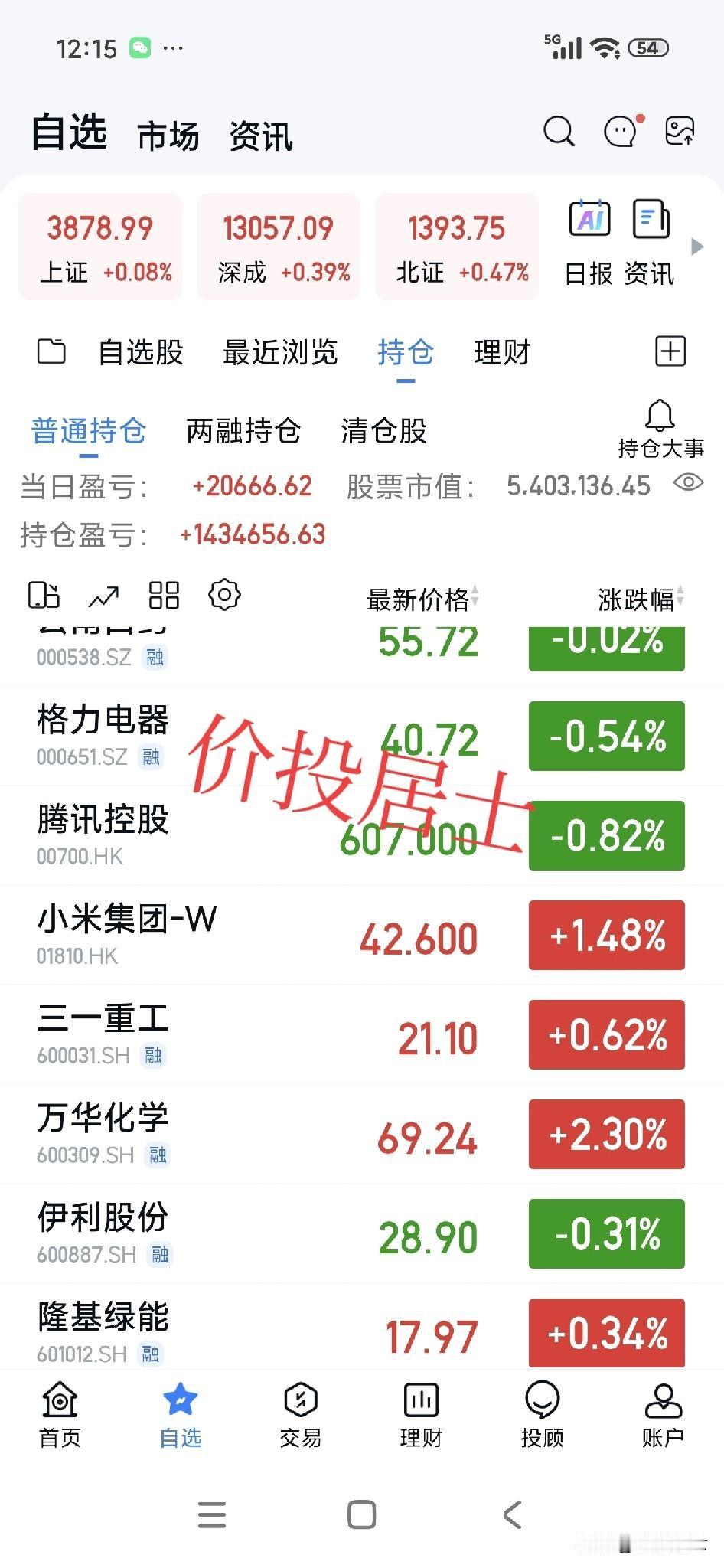 我中午又吃菜煎饼了,已经连续6天吃菜煎饼加两个鸡蛋了[笑哭]我这个人做事情有时候能形成一种成瘾性。 这样吃下去我都要考虑要不要自己干个菜煎饼店了,一来自己喜欢吃,二来这个确实美味可口,营养丰富,老少皆宜[呲牙] 不觉不觉,今天就是本周的最后一个交易日了,时间过得好快,最近个人也在勤加思索一些修行上面的东西。 至于这个股市大家不要慌,个人觉得即使这个短期调整,也调整的差不多了。牛市容易急跌调整,杀出犹豫的筹码,然而急跌的时间不会太长,慢慢又会进入下一个慢涨急跌的走势里去[祈祷]
