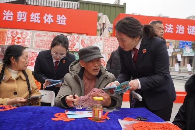 在“法治市集”服务区,检察干警为群众提供法律咨询服务,并发放宪法宣传册、防范电信网络诈骗指南等手册共200余份,现场解答群众疑问10余件。在“非遗法治”互动现场,检察干警邀请现场群众共同竞猜以“宪法”、“民法典”、“长江大保护”等法律词汇为谜底的字谜,与市民共同感受法治文化。