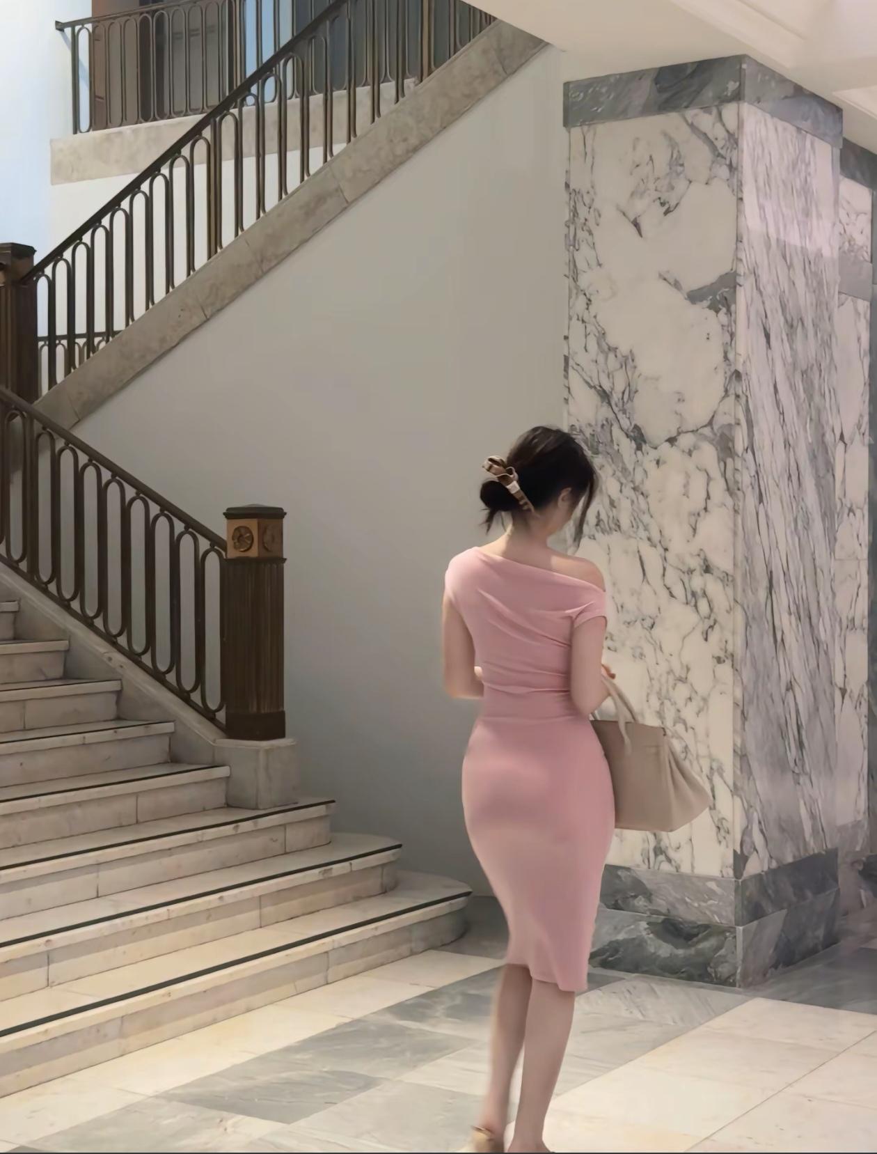 优雅粉裙,时尚穿搭,自信步伐,魅力无限!