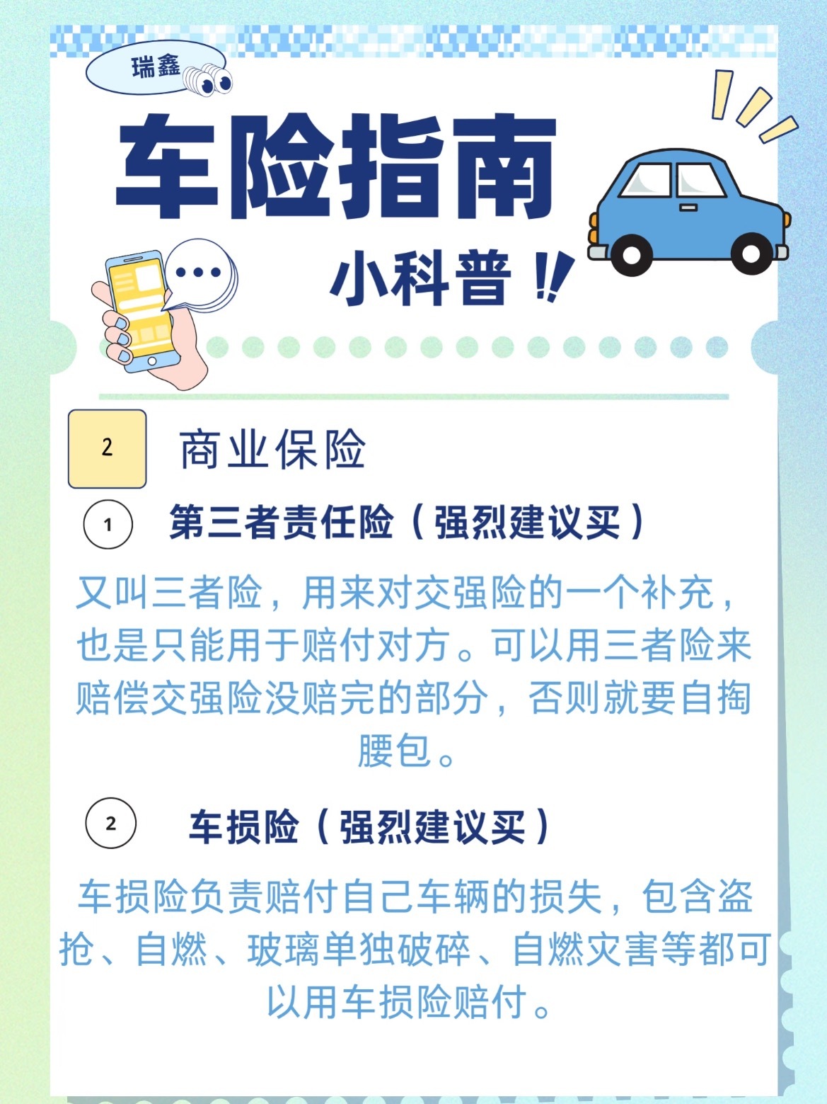 🫠每年买车险都头大,推销电话一堆到底哪些必须买?哪些是智商税?别怕别怕,看完这篇自己就能做决定!😎📋 车险分类指南:1️⃣ 交强险(必须买)• 国家强制,不买不能上路• 只赔对方,不赔自己• 包含死亡/伤残、医疗费、财产损失三部分2️⃣ 商业险(建议搭配)✅ 三者险(强烈建议):交强险的升级包,赔对方车和人,建议至少200万保额✅ 车损险(强烈建议):赔自己车的损失,包含盗抢、自燃、玻璃破碎、自然灾害等✅ 车上人员责任险(建议买):保自己车上的人,分司机和乘客,可按座位投保✅ 医保外用药责任险(酌情买):补充三者险,覆盖医保目录外的医疗费用3️⃣ 附加险(按需选择)• 车身划痕险:新车、豪车可考虑• 发动机涉水险:多雨地区建议加• 节假日翻倍险:经常自驾游的划算• 增值服务条款:包含道路救援、代驾等💡 投保口诀:交强必须上,三者不能少,车损按车况,乘员看需求,附加按场景,保额要充足。我与汽车的日常大v聊车