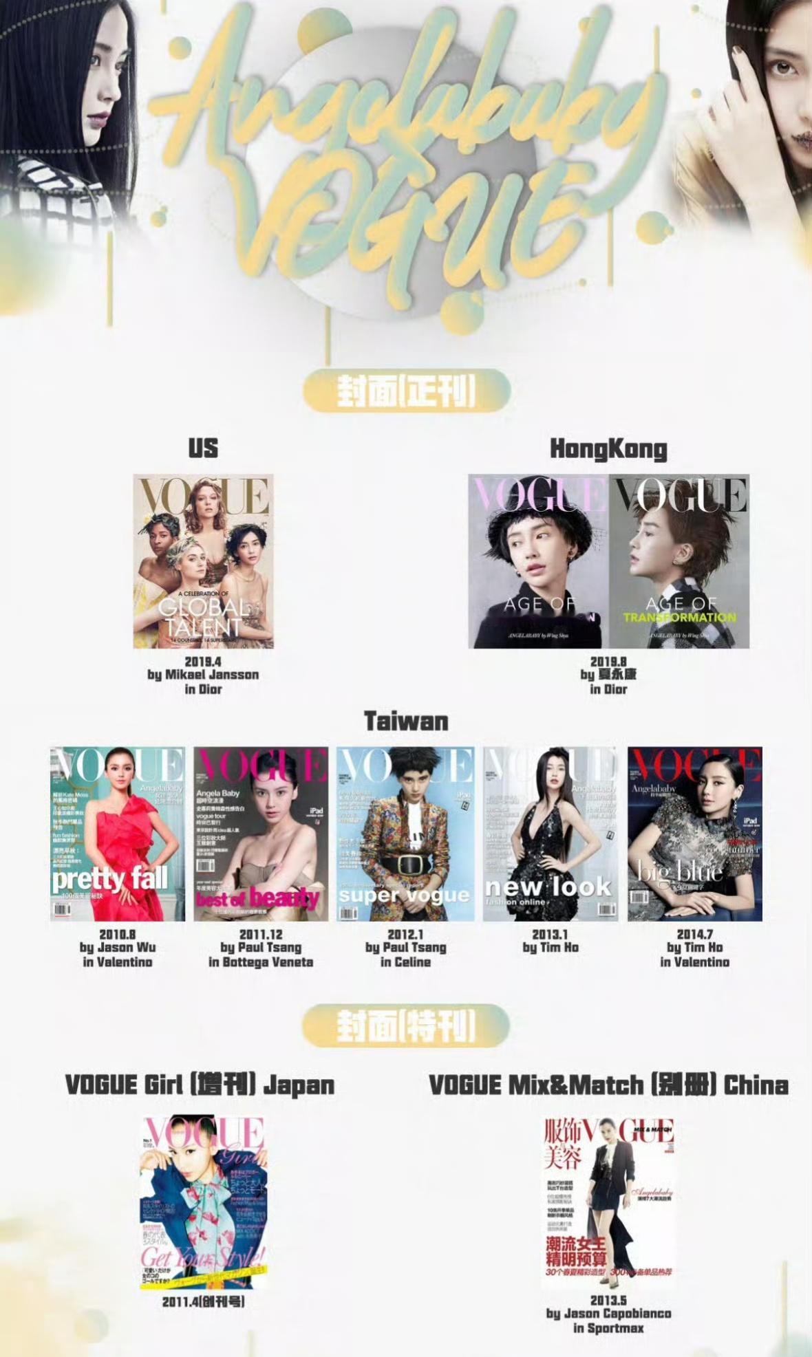 angelababy ——VOGUE的顶级星光Angelababy杨颖是首位登上四大之首美版《VOGUE》封面的中国女明星,VC封面正刊7刊,特刊2刊,在时尚领域独树一帜☝🏻