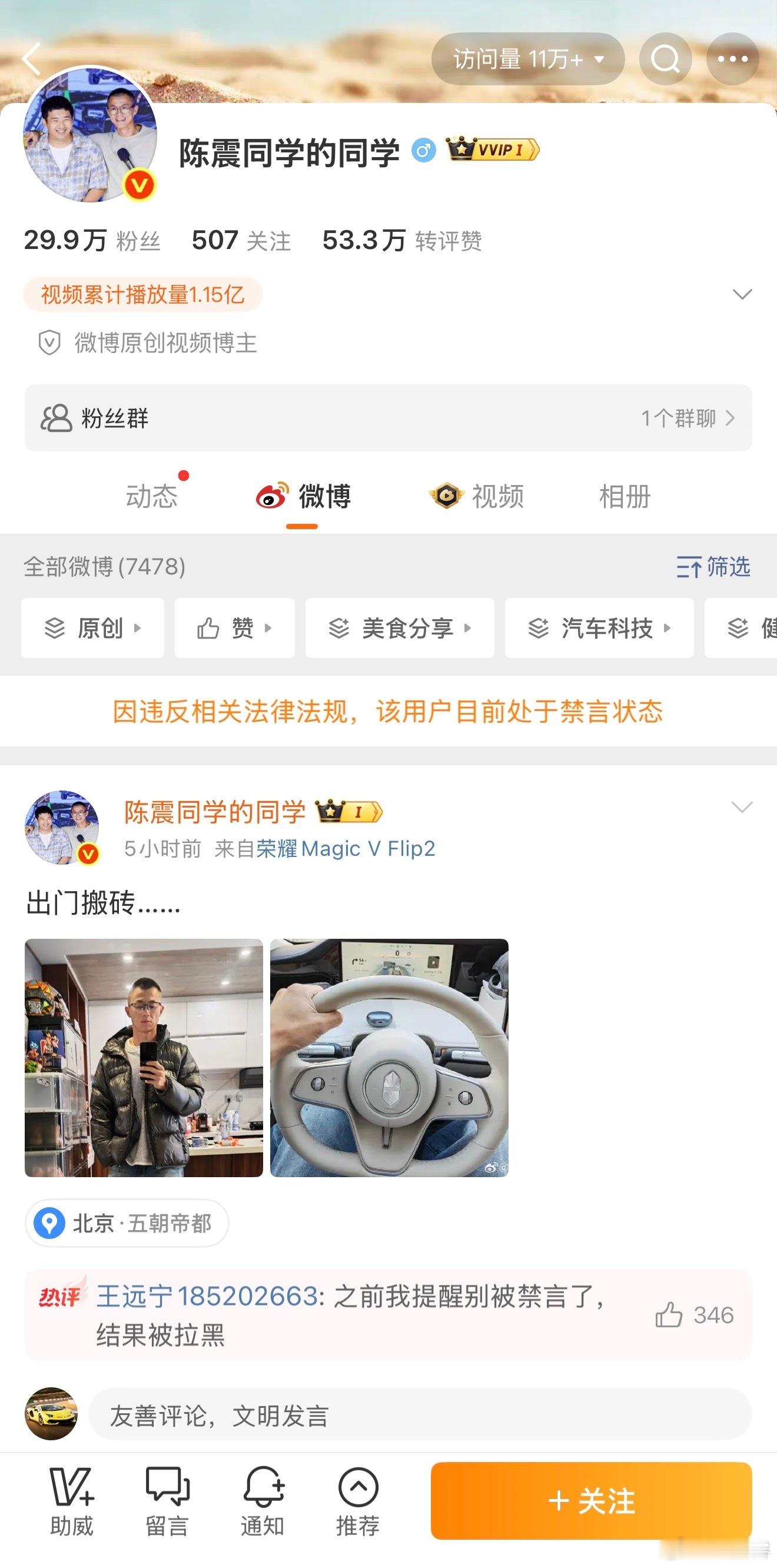 除了陈震大号, 小号也被禁言这下大家知道「违反相关法律法规」有多严重了吧