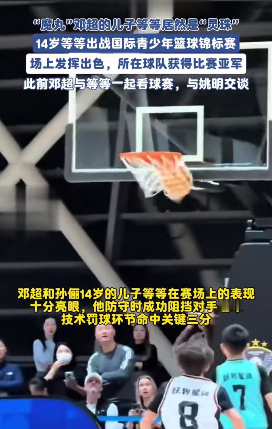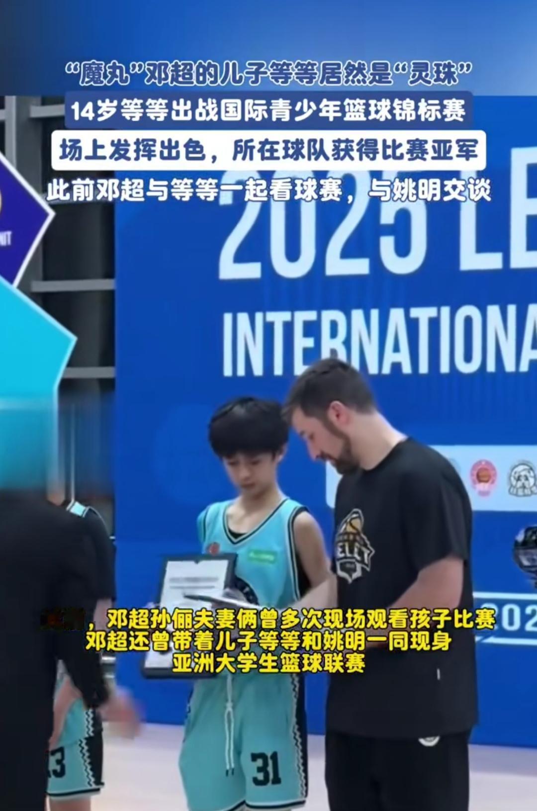 谁能想到“搞笑男”邓超的儿子,是个篮球狠人啊!14岁等等出战国际青少年篮球锦标赛,球队拿了亚军,他在场上又防对手又飙关键三分,直接杀疯了。 之前邓超带他看球赛还和姚明聊过,现在这孩子用实力证明不是闹着玩的——赛场上的专注劲儿,和他爸的“魔丸”画风完全俩样,活脱脱篮球场上的“灵珠”。 明星娃能在爱好里扎扎实实地拼,比追着镜头跑靠谱多了。看他领奖那股认真劲儿,突然懂了邓超晒娃时的骄傲——这哪是星二代,是未来篮球场上的潜力股啊!