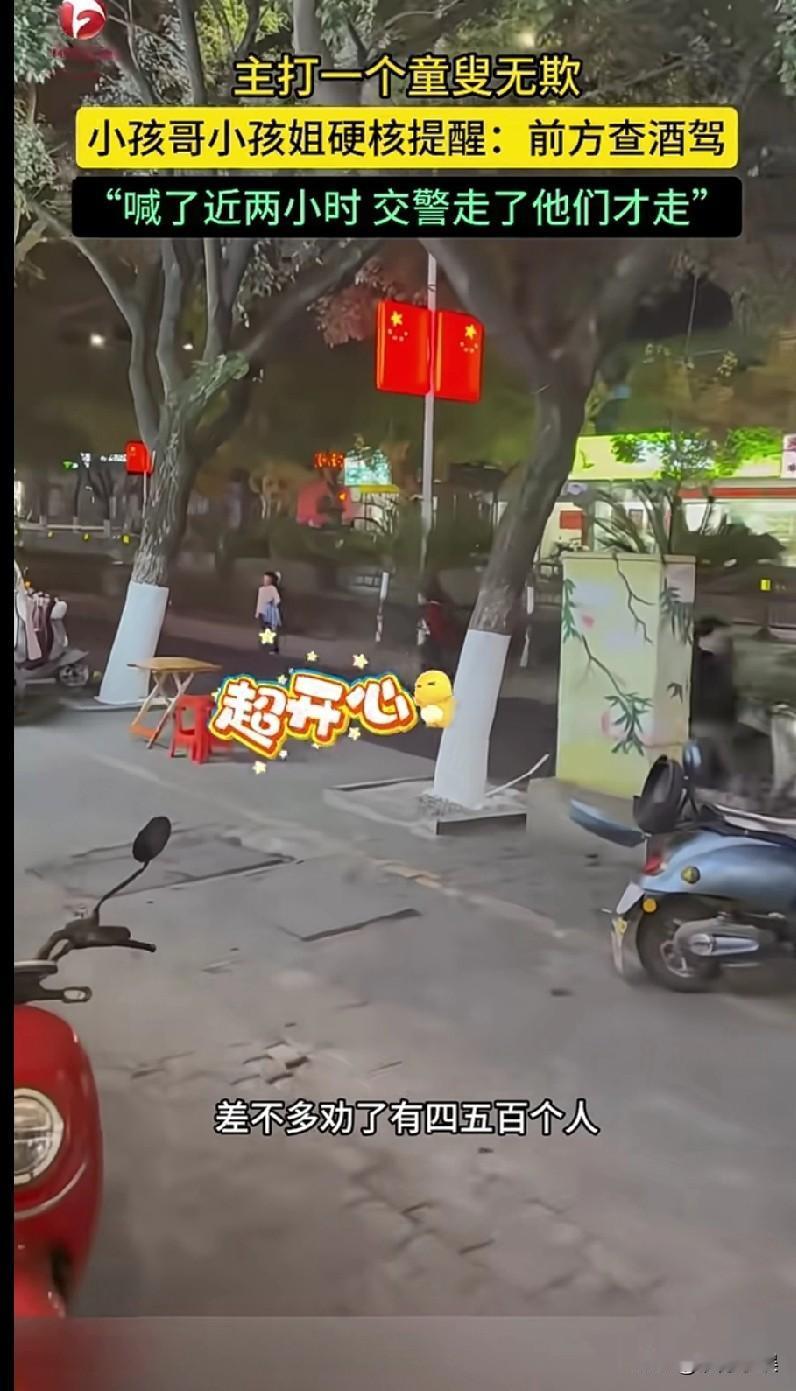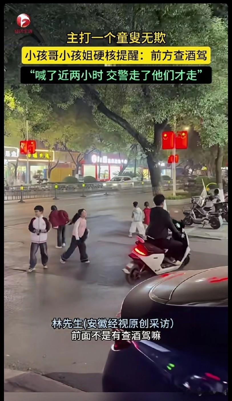 这些孩子太可爱了,不知交警看到了有何感想! [捂脸] 路口前面有交警查酒驾的,然后一群孩子们知道了,孩子们就在路口大声提醒过往的车辆。看到骑电动车的,就提醒前面有交警,要带头盔,要注意安全,这些车一听到前面有交警,马上返回。小孩们共劝返了差不多四五百人,喊了大约2个小时,直到交警走了,孩子们才回家。这些小孩子们,感觉做了好事,特别开心! 孩子们真的是天真善良。而且小孩都知道查头盔,会罚钱![捂脸]哈哈,如果交警看到这个视频会咋想?