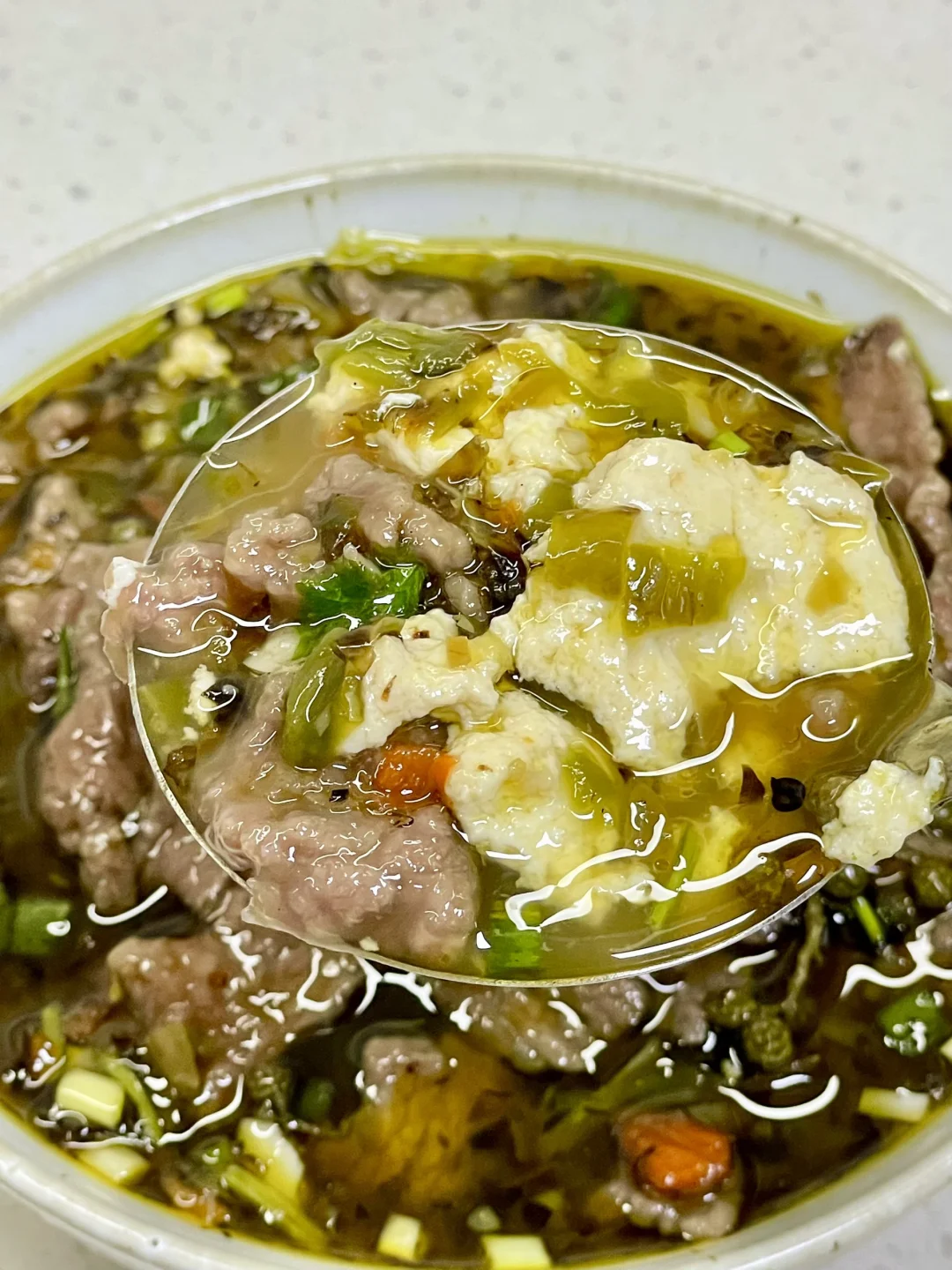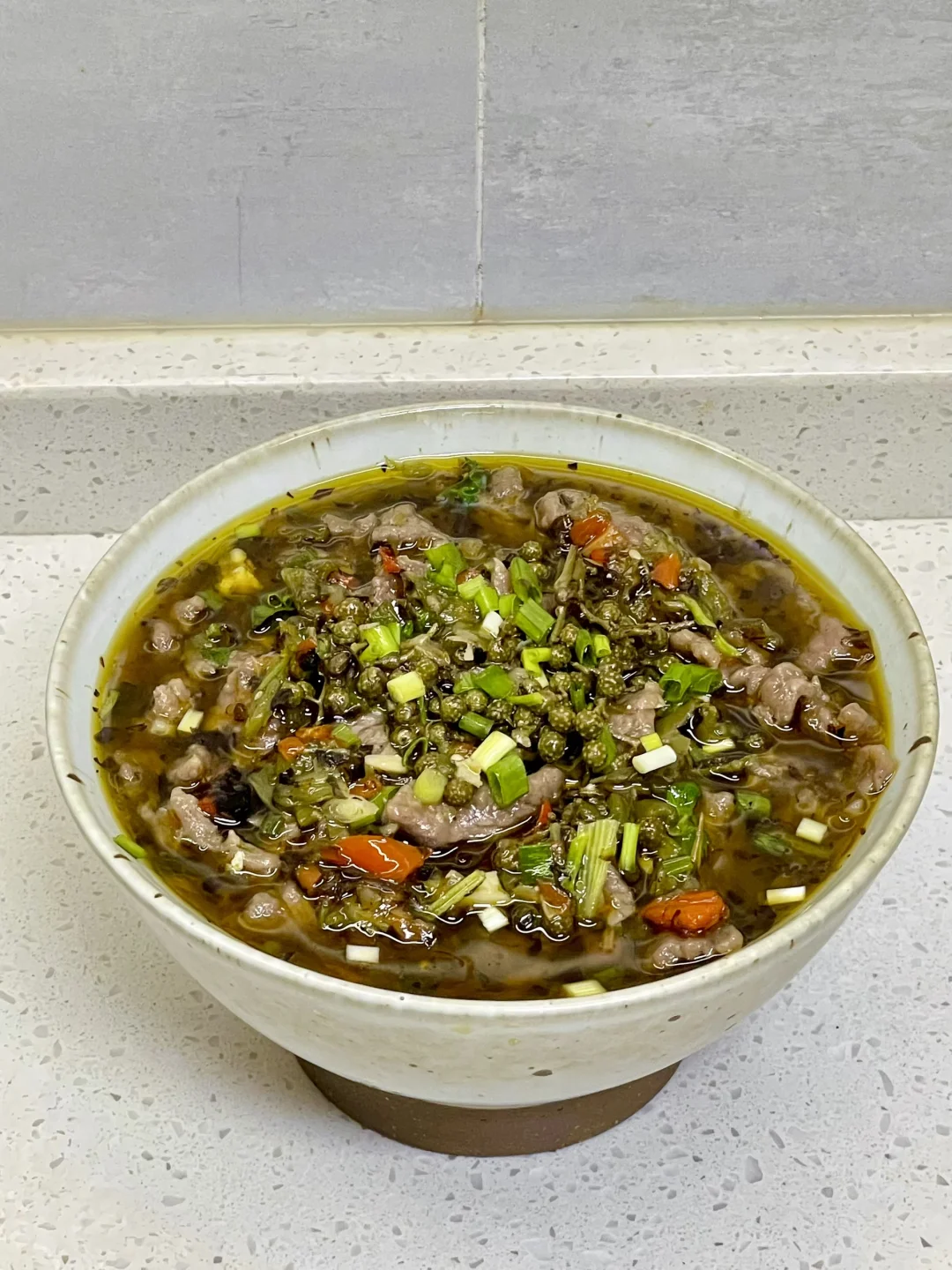 巨巨巨下饭的烧椒豆花牛肉,椒麻鲜嫩,牛肉嫩滑,豆花入味,加了点新鲜的青花椒,味道更上一个层次,唯一的缺点就是太费米饭了🍚 1️⃣:牛肉切片,加入盐 生抽 胡椒粉 水淀粉抓匀备用 2️⃣:锅中少油少盐润锅,放入二荆条炒至虎皮状发黑状态剁碎备用,油热倒入姜蒜 青花椒爆香,加入烧椒炒香,加入清水烧开,调味加盐 生抽 胡椒粉熬煮个四五分钟 3️⃣:放入豆花煮入味,再转小火放入牛肉煮定型,转中火煮半分钟,加入少许鸡精,撒上葱花香菜即可
