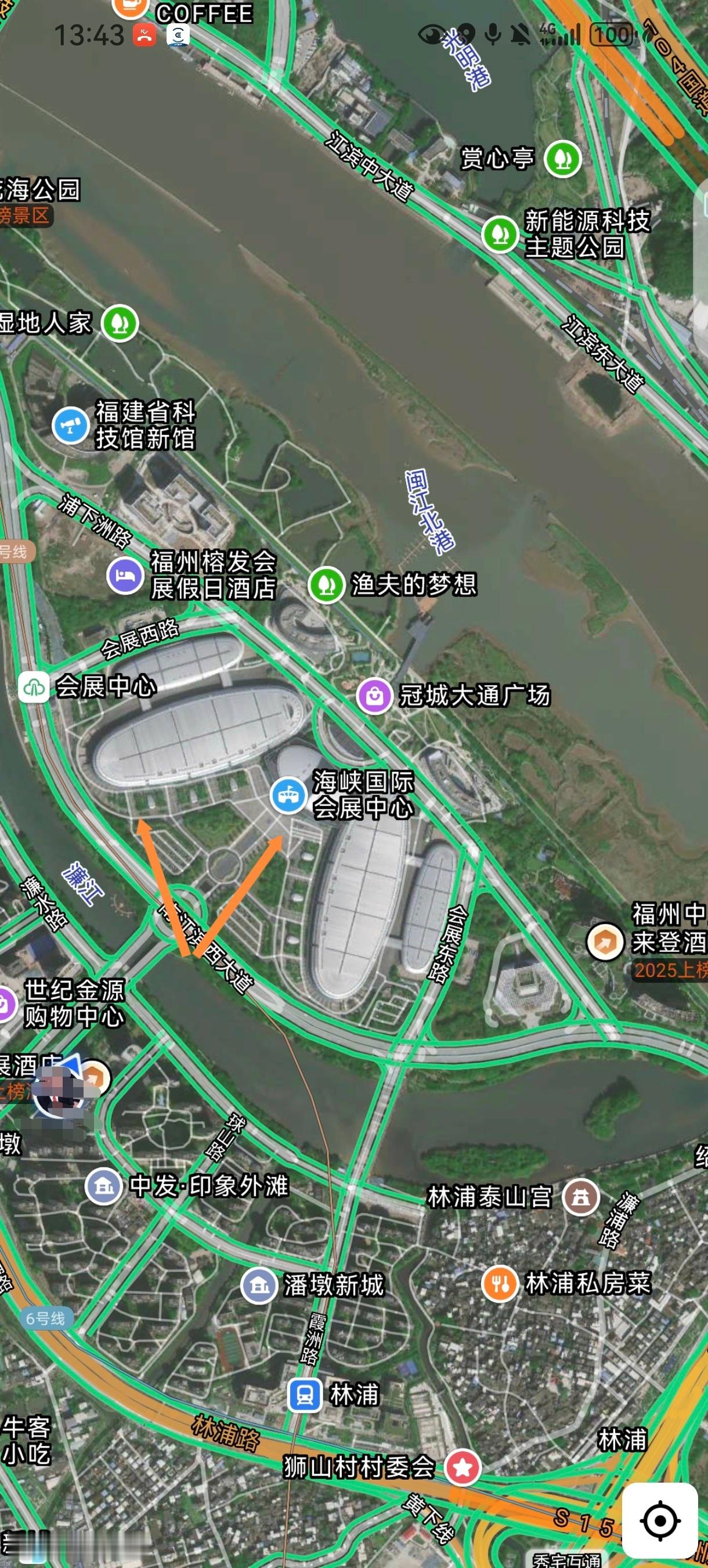 新质福建万千气象【福州闽江有个元宝岛,里面藏着海峡国际会展中心】图2和图4,就是俩箭头➡➡观察方向!福州海峡会展中心的选址兼具交通与战略红利,这个独立地理单元的选址,还是很讲究的。它的风水布局则贴合传统“藏风聚气”理念,两者相辅相成,尽显得天独厚的优势。具体来说,其风水布局贴合福州“山环水抱”的城市大格局——背后鼓山山脉可作倚靠,前方闽江如玉带环绕,契合传统风水里“靠山面水”的吉地特质。会展中心地处仓山区“鲤鱼”地形的七寸位置,被视作整个仓山区的风水眼。再者,它通过人工挖掘林浦河形成孤立会展岛,调节水流以聚气纳运;整体造型俯瞰如一枚金元宝,刚好能承接鼓山直冲而来的山脉真气,将其转化为聚财气场,既化解了直冲气场的不稳,又强化了对会展活动至关重要的聚集效应,为各类展会带来兴旺运势的寓意。福州